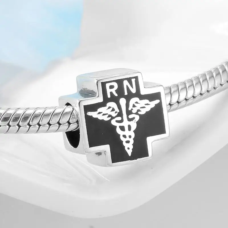 100% 925 пробы серебряные подвески медсестры в форме сердца сверкающие CZ Бусины Подходит для оригинальных браслетов Pandora для изготовления ювелирных изделий