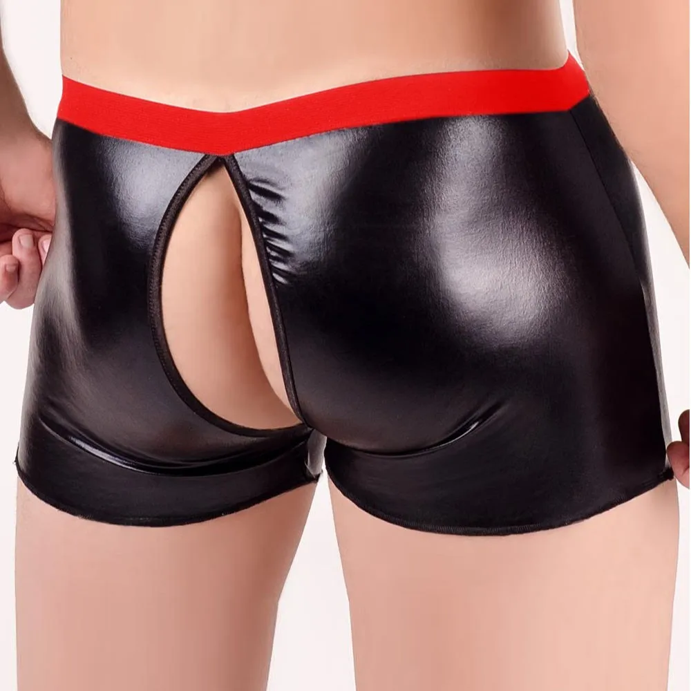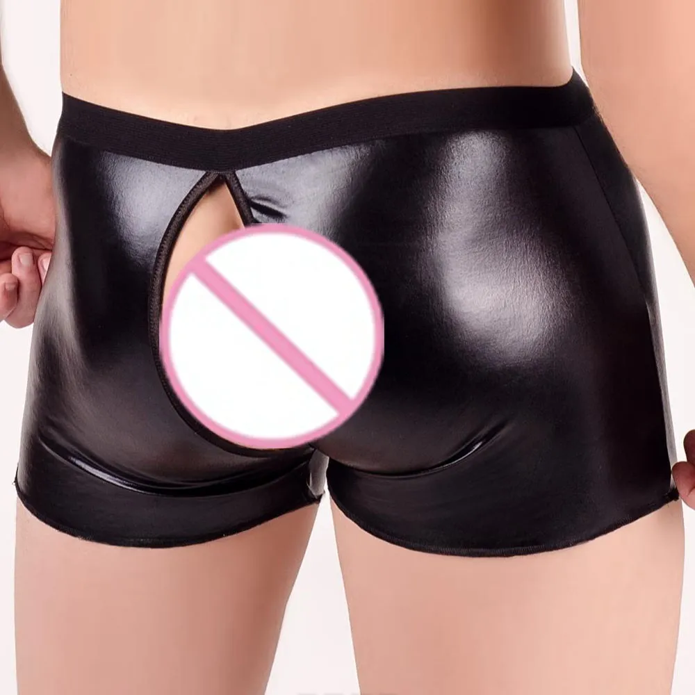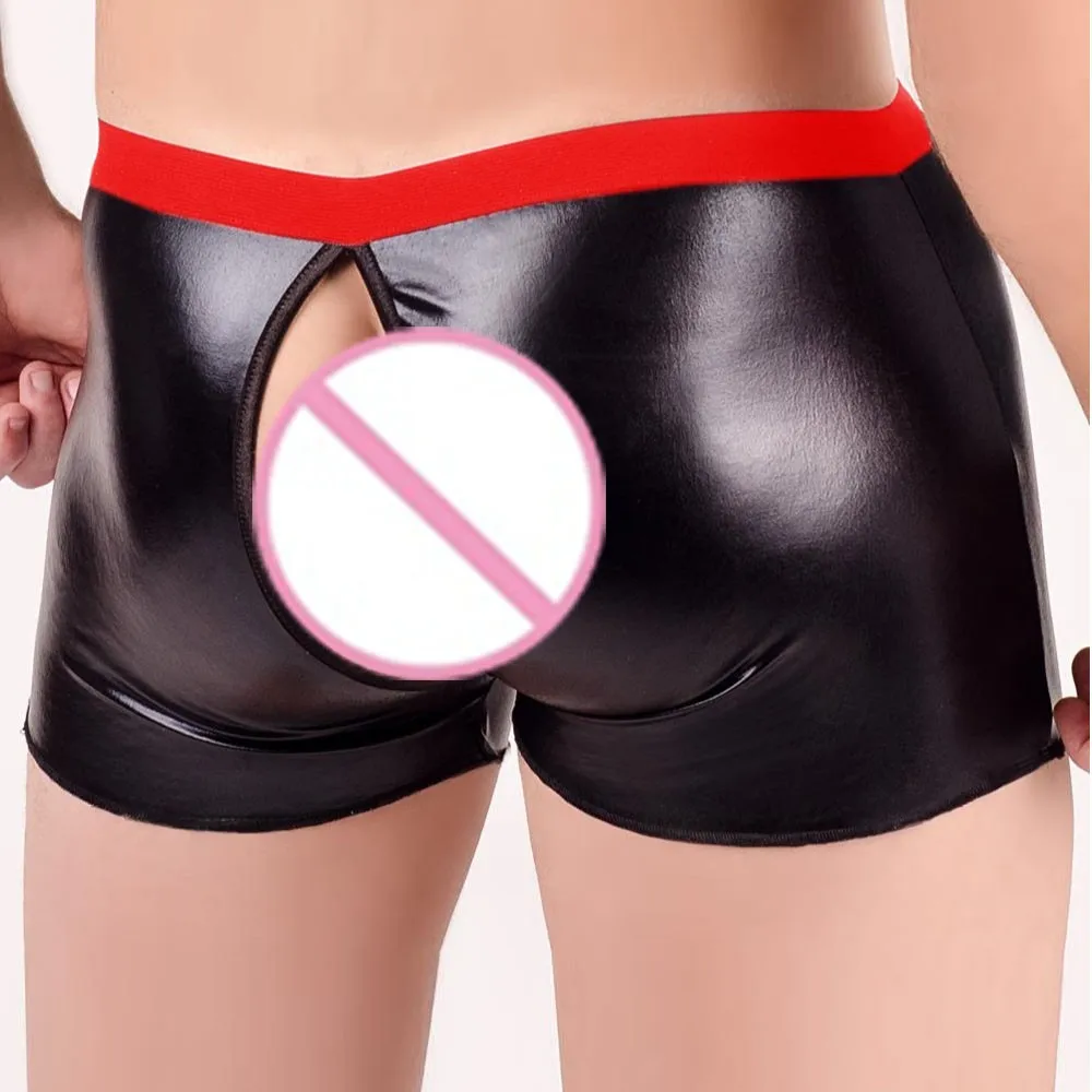Для мужчин сексуальное нижнее белье с открытой промежностью кожаные шорты-боксеры Шорты Клубная одежда, Эротика трусики-боксеры Шорты Для мужчин застежка для нижнего бельянижнее белье с принтом Новинка