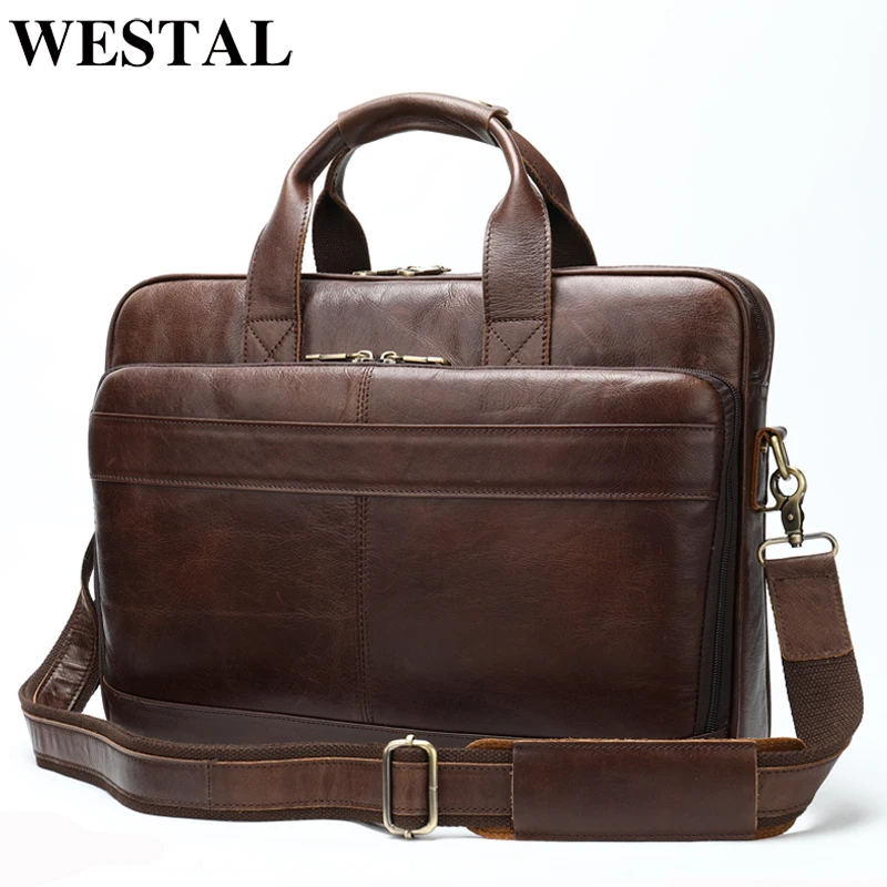WESTAL мужские Портфели Сумка для ноутбука 15 дюймов мужские сумки из натуральной кожи для документов мужские большие сумки-мессенджеры компьютерные сумки для мужчин 8841