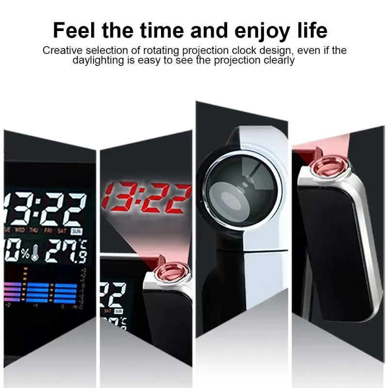 Светодиодный Будильник Snooze с функцией подсветки, ЖК-проекция, будильник, будильник, дисплей, время, температура, погода