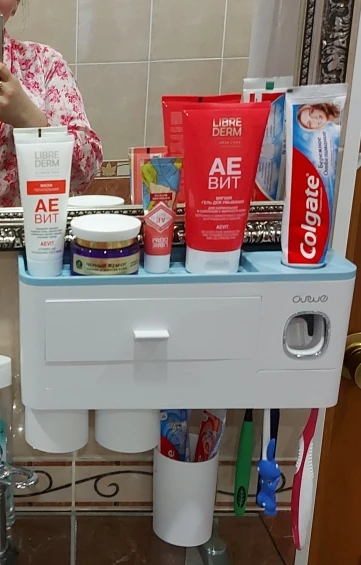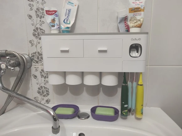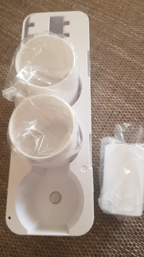 Для тех, у кого возникнут проблемы с дозатором пасты - сначала не получалось ничего выдавить, потом открутила тюбик и немного ножницами протолкнула резиновую заглушку внутрь, чтобы щель стала больше. После этого паста все время выдавливается без каких либо проблем. Штука отличная, стаканчики держатся хорошо, не падают. Выдерживает несколько флаконов по 300-500мл. Рекомендую.