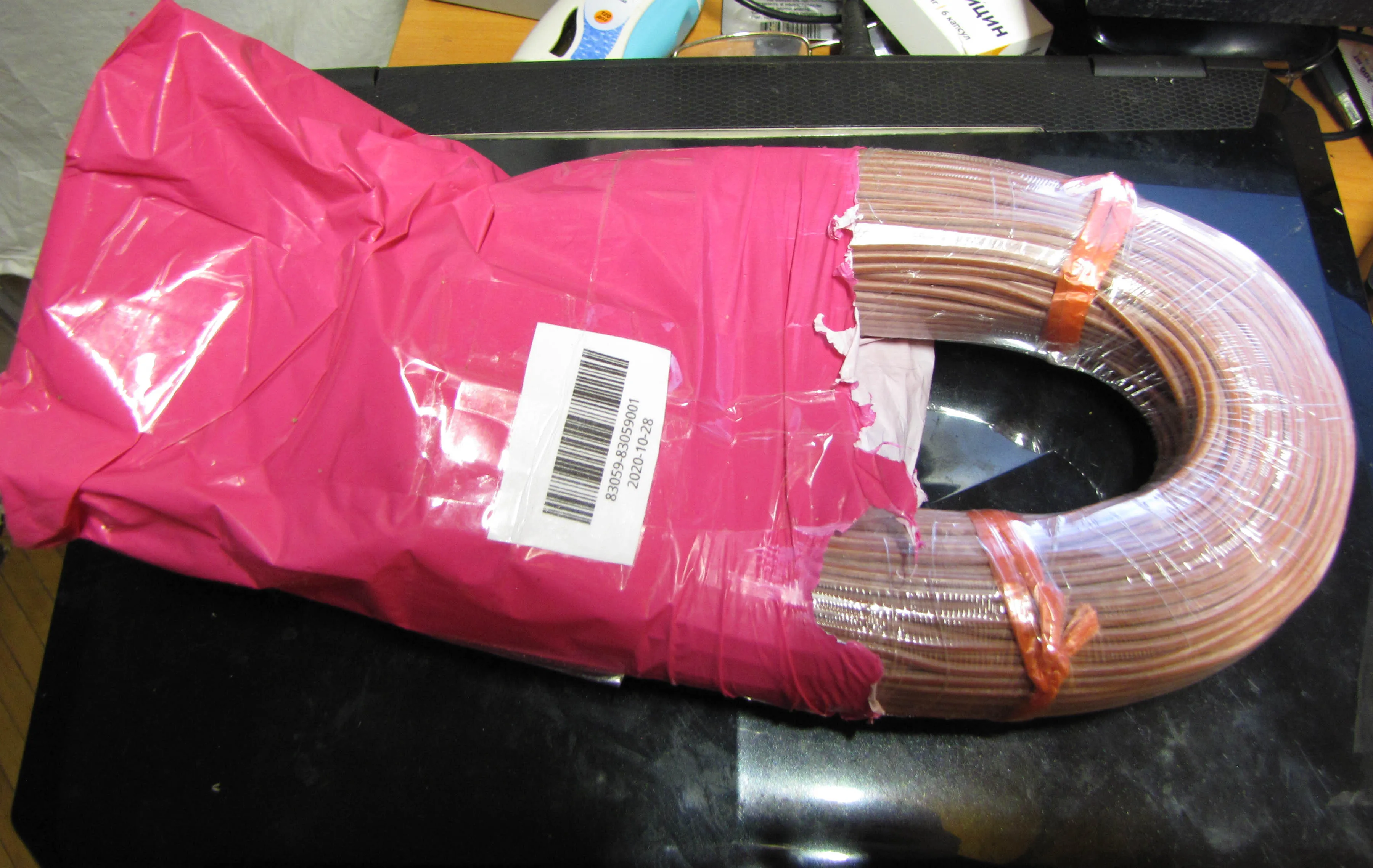 Упаковано надежно, пришло в Украину за 3 недели. Все соответствует описанию - в наличие 100м кабеля, 20шт. втулок для обсадки соединений кабеля и 1м терм усадки. Благодарю продавцов магазина и службы доставки, поздравляю с Новым годом, всем успехов и здоровья!