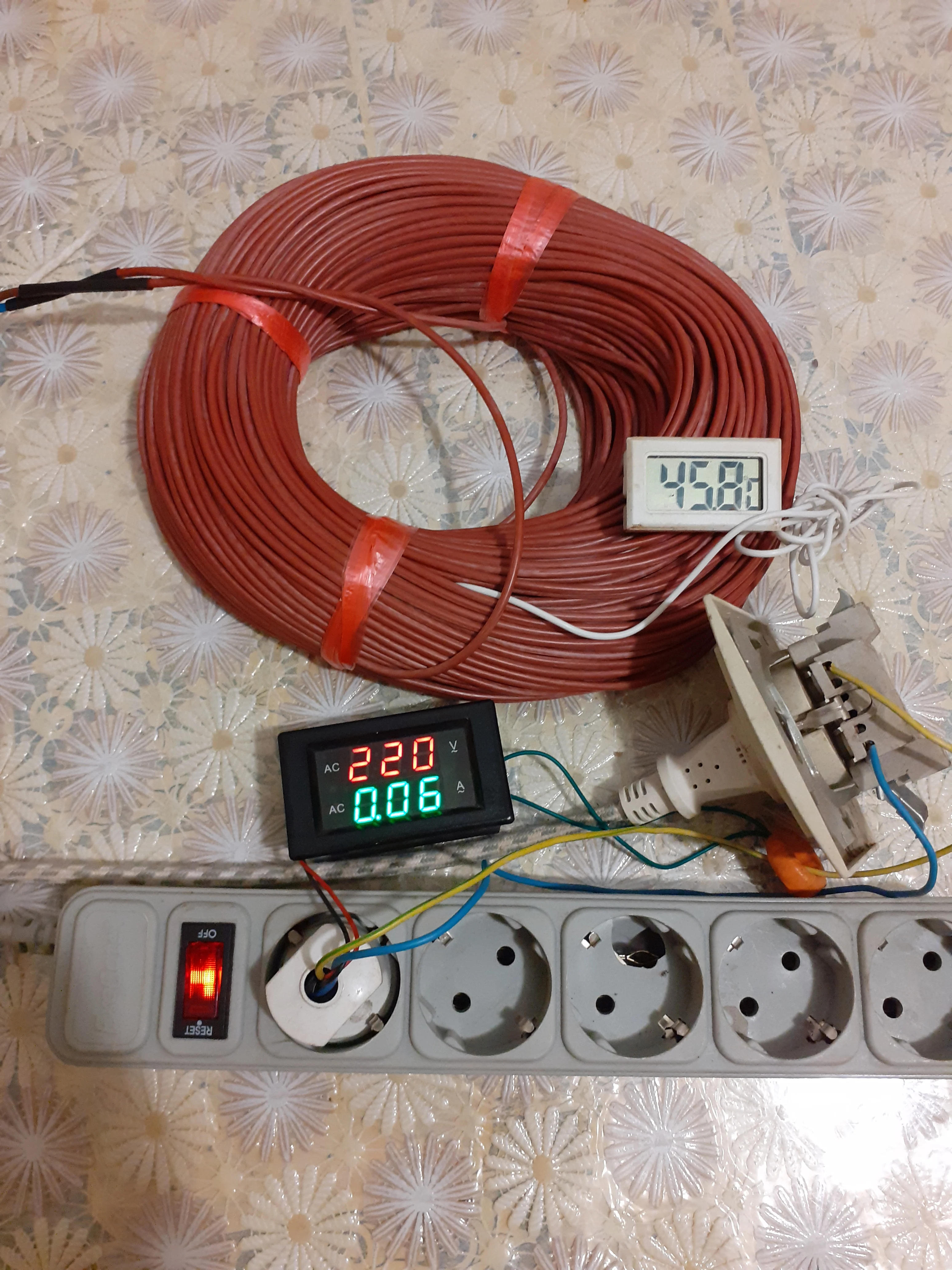 очень хорошо греет, руку обжигает просто. порезал 6 метров, потребление 300 вт