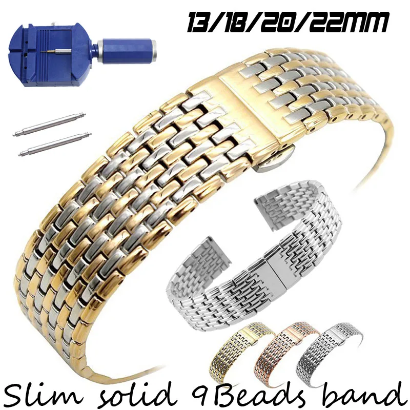 Ремешок для часов JL9Z из нержавеющей стали, сменный однотонный тонкий браслет с застежкой-бабочкой для наручных часов 13 мм 18 мм 20 мм 22 мм