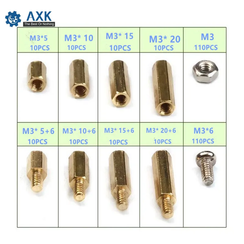 Набор из крепежный инструмент латунных медных гаек, 300 шт., винты с шестигранной головкой, M3, для электрической сковороды