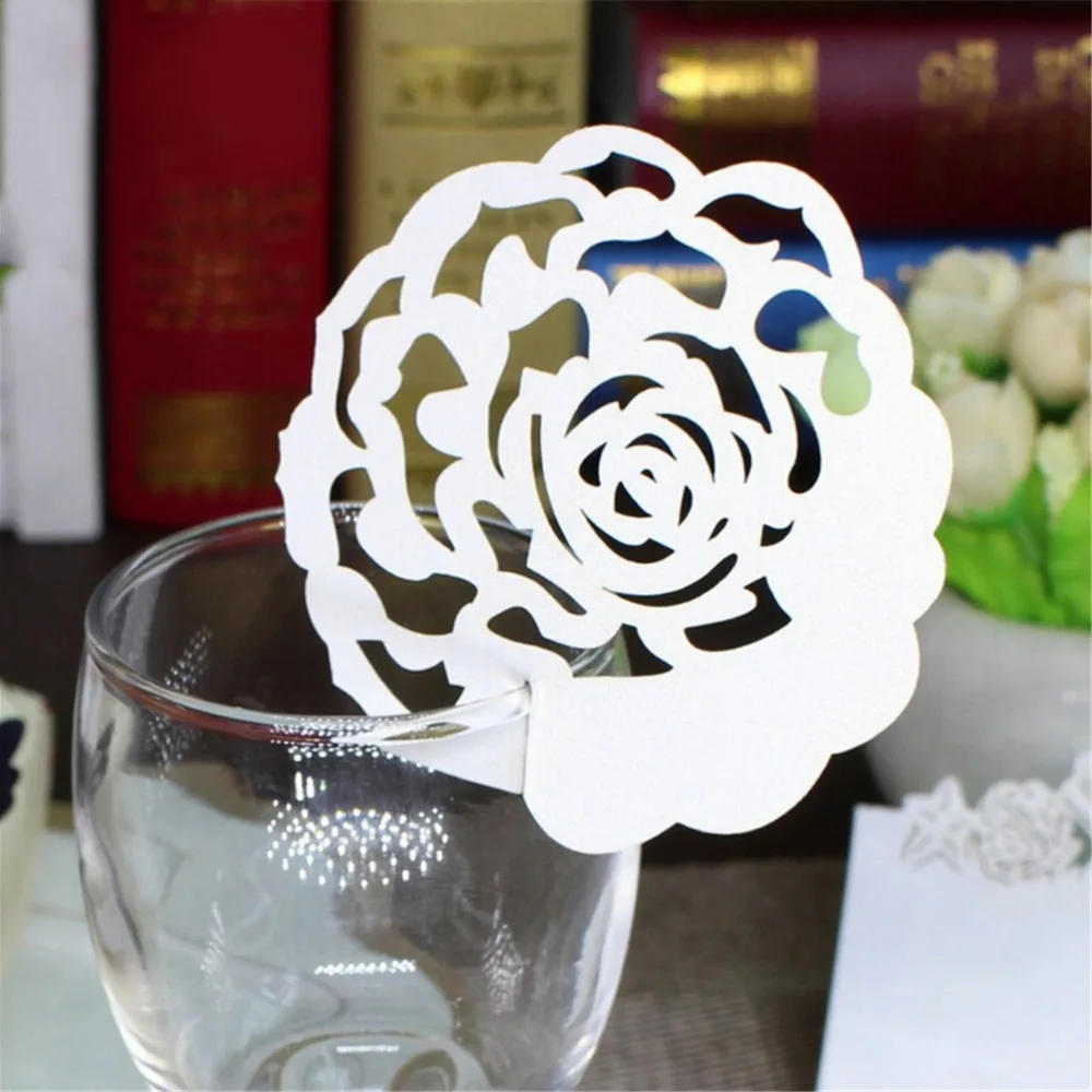Цвет: белыйКоличество: 50 шт./компл.Материал: перламутровая бумагаРазмер: 7 см * 7,5 см/2,76 "* 2,95" (прибл.)Посылка ция: 50 шт. xЦветокОткрытки для Винных Бокалов