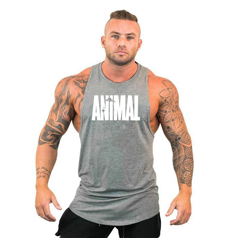 Майка мужская тренировочная с принтом животных, хлопок, Y-образный вырез на спине, Стрингер для бодибилдинга и фитнеса