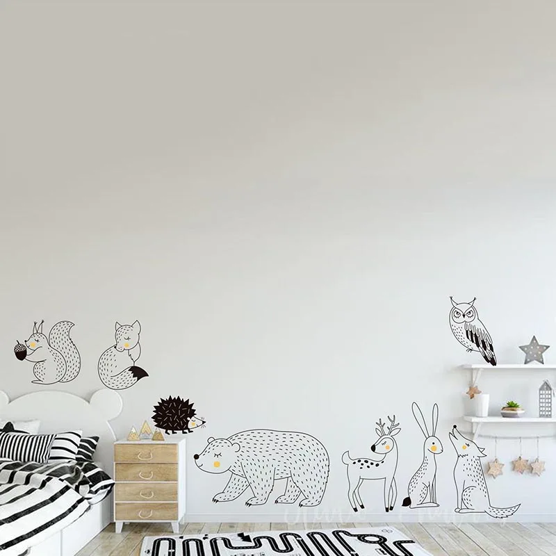 Большие лесные животные, медведь, олень, кролик, фотообои для детской комнаты, мультяшная сова, лес, настенные наклейки для игровой комнаты, виниловые