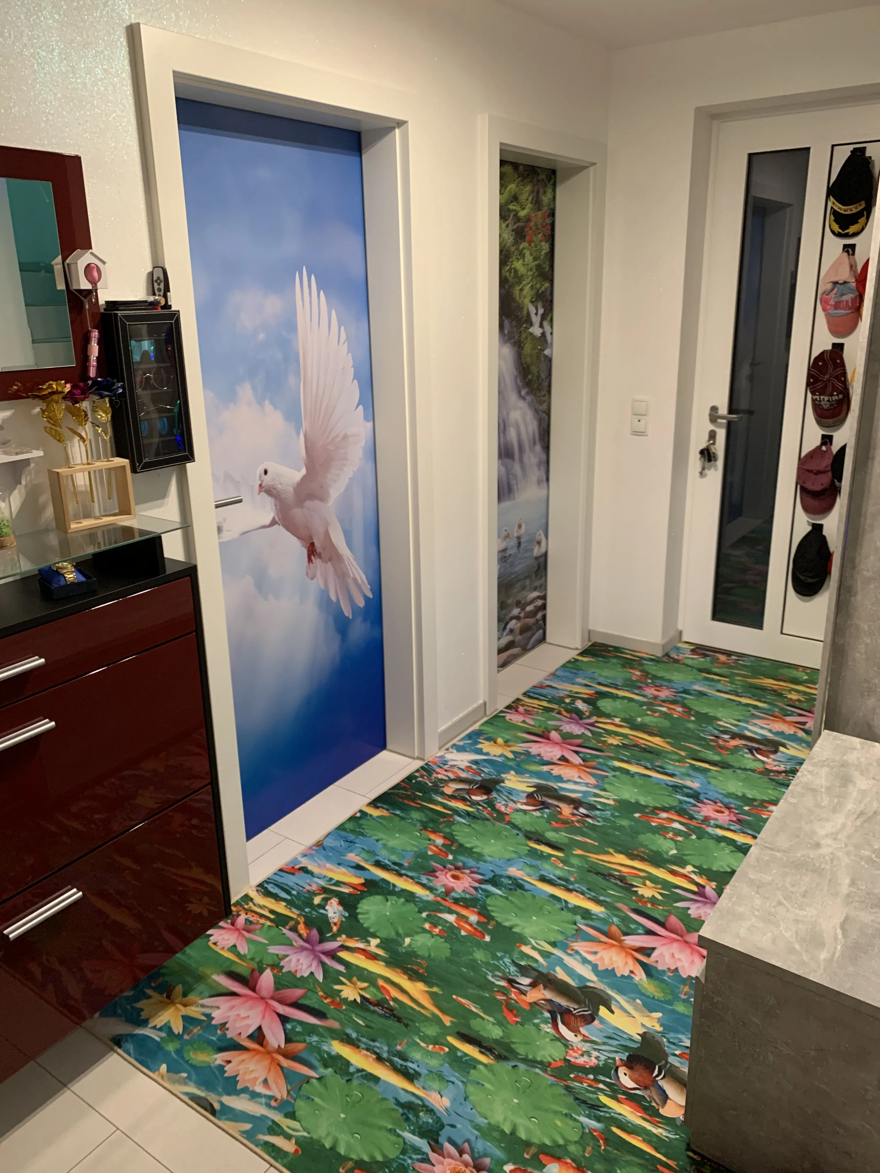 Der Teppich ist in einem hervorragendem druck! Sieht voll spitze aus. Habe dem Verkäufer meine Größe mitgeteilt hat alles super gepasst war ganz genau so groß wie ich gewünscht habe. Er ist wurde relativ rasch versendet und war in wenigen Wochen da. Der Teppich hat unten anti rutsch noppen, relativ Praktisch da er nicht verrutschen kann. Er ist in einer guten Qualität, würde in wieder kaufen. Großes Lob an die Firma weite so!! Ist ein absoluter Ey-catcher!