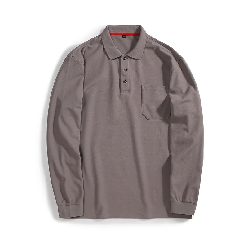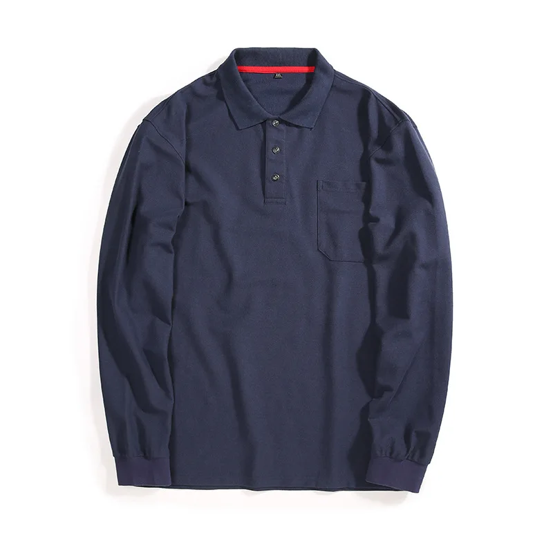 Рубашка-поло мужская осенняя, однотонная, с длинными рукавами, с карманами, 8XL, размера плюс