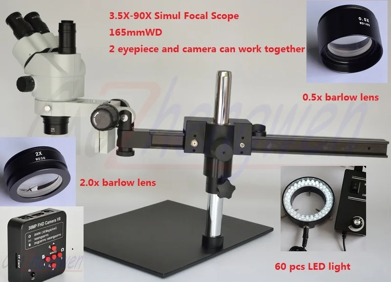 Один Тринокулярный Стерео зум микроскоп головка симул фокусное расстояние модель