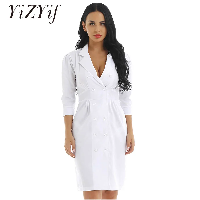 Женская скраб-униформа, косплей, костюм, воротник с лацканами, рукав 34, скраб, лабораторная униформа, платье