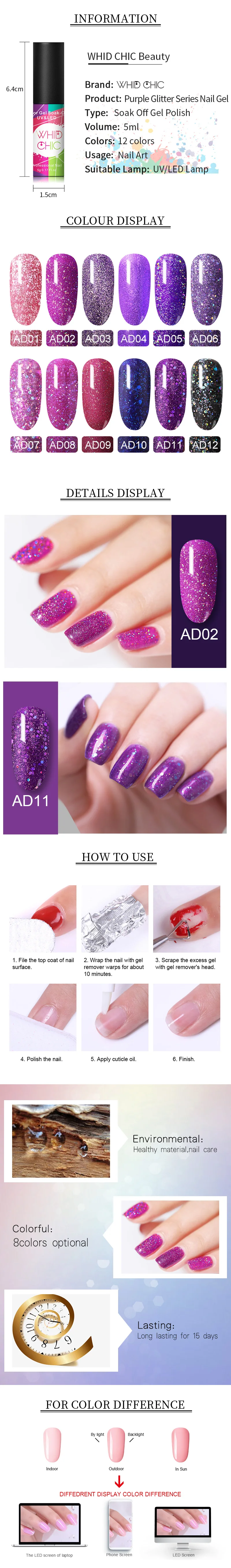 WHID CHIC гель для ногтей с блестками, лак, лак, фиолетовая серия, блестки, долговечный УФ-гель для дизайна ногтей, 5 мл для дизайна ногтей