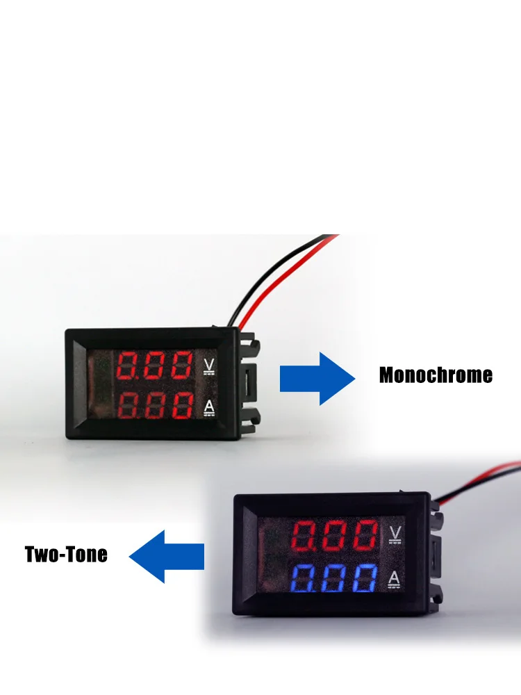 0,28 "led DC0-100V 10A цифровой вольтметр Амперметр 2 в 1 мультиметр 12 В/24 В Напряжение Ампер метр Вольт Ампер Датчик панель двойной дисплейС небольшим размером x 29x21 мм), широкий диапазон измерений (постоянный ток 0-100 в; 0-10 а) и высокая точность процентов (± 1 цифра)Отображение напряжения и тока одновременно в различных цветах, красный для напряжения, синий для тока (ток измеряется в отрицательной рельсе)Требуется внешний источник питания; С обратной защитой подключенияЗаземляющий провод тестового конца и клеммы источника питания-это тот же провод; Быстрое обновление около 500 мс/разСо встроенным шунтом, имеет Калибровочные потенциометры напряжения и токаОсобенности:Рабочее напряжение: DC 4,5-30 вИзмеренное напряжение: постоянный ток 0 - 100 вМинимальное разрешение (В): 0,1 вИзмерение тока: 10A (измерение непосредственно, Встроенный шунт)Минимальное разрешение (A): 0.01AРабочий ток:Размеры: 48x29x21 ммМонтажный вырез: 45,5x26,5 ммЧастота обновления: около 500 мс/разТочность измерения: 1% (± 1 цифра)Рабочая температура: от-10 до 65 °CРабочая влажность: от 10 до 80% (без конденсации)Применение: подходит для автомобильных/электрических автомобилей/мотоциклов мониторинга батареи или других продуктов измерения напряжения токаПроводка: черная линия (тонкая): свободная или понижающая цепь (модуль) отрицательнаяКрасная линия (тонкая): источник питания + черная линия (Толстая): COM, Общее измерениеКрасная линия (Толстая): PW +, измерительный терминал, входное напряжение, положительныйЖелтая линия (Толстая): вход +, ток + (для получения более подробной информации обратитесь к схемам проводки)Примечание: напряжение между тонкой Красной и тонкой подошвой; Цвет Черный линии должна быть в пределах DC 4,5-30 вАмперметр может быть подключен только к отрицательному устройству под тестом 10 А ниже амперметра (включая 10 А), встроенный Шунт, не требует внешнего шунтаКогда черная тонкая линия свободна, лучше использовать изоляционную ленту вокруг открытой части провода, чтобы предотвратить Короткие замыкания, если просто использовать в качестве вольтметра, рекомендуется, чтобы желтая линия и черная линия были соединены вместе, чтобы предотвратить цифровое мигание амперметраПосылка включает в себя: 1 цифровой Ампер-метр