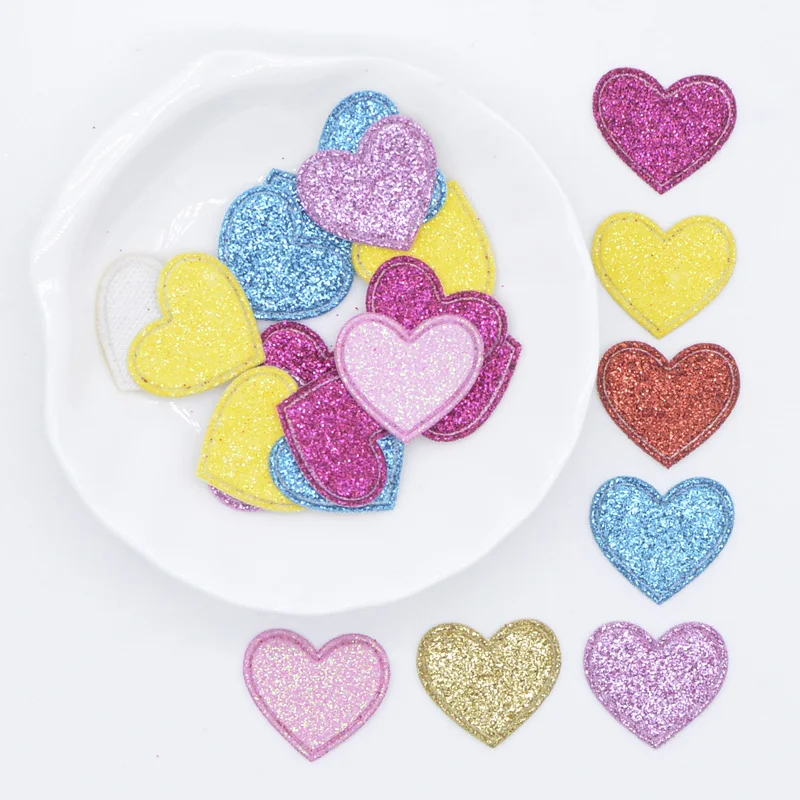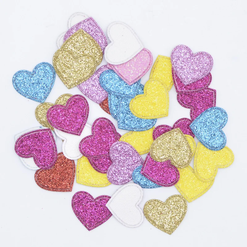 100 шт.лот смешанные блестящие кожаные Аппликации в форме сердца для DIY одежды, ремесла, швейные принадлежности, головной убор, шляпа, аксессуары для декора C21