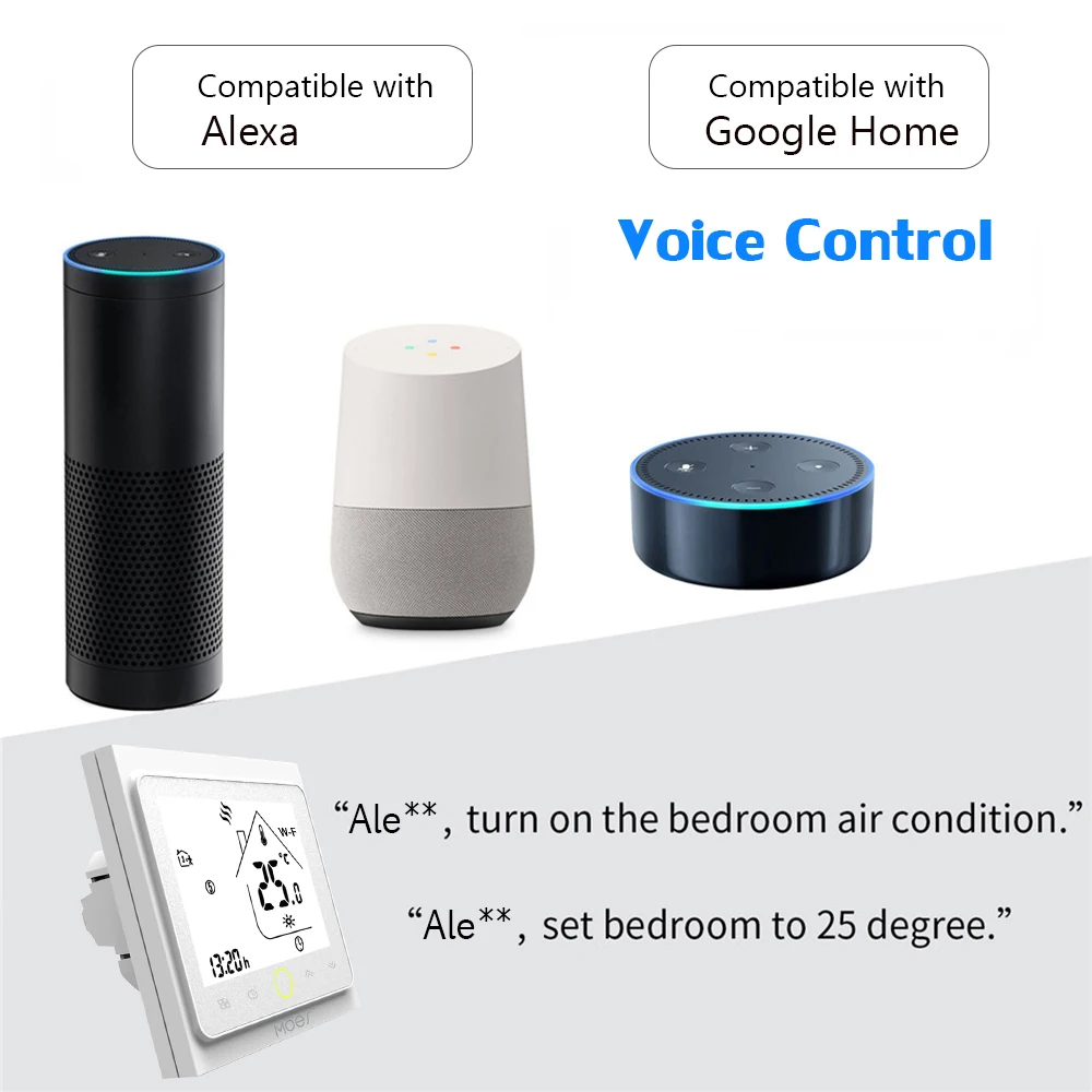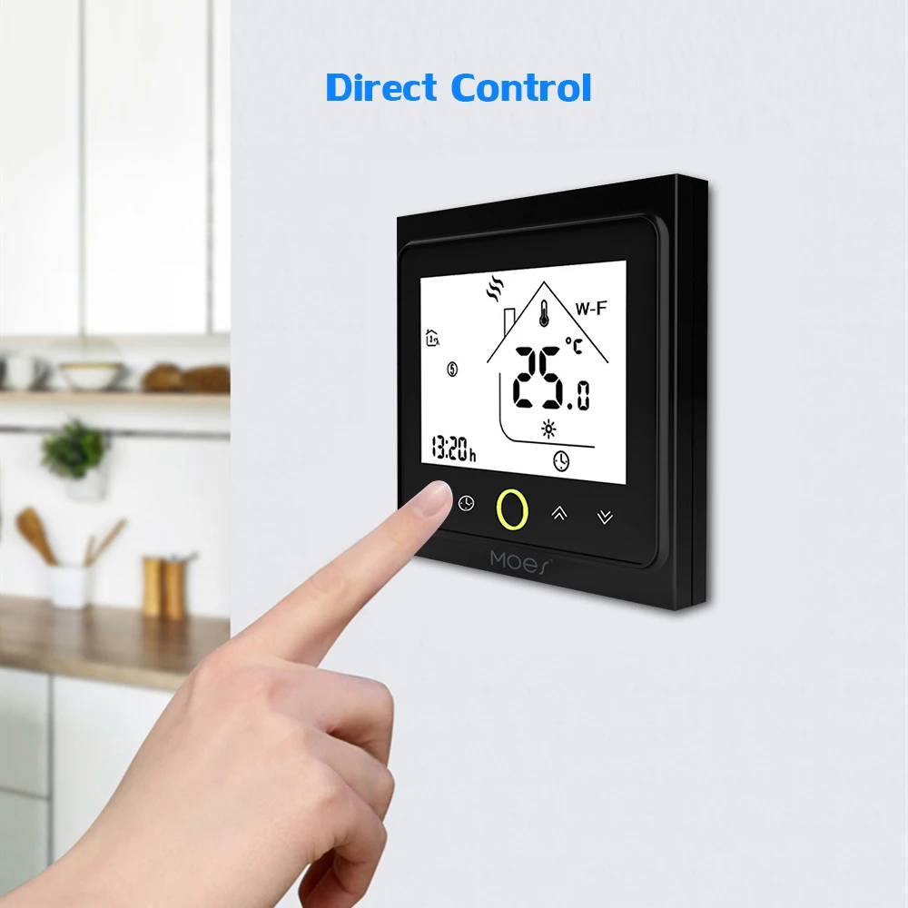 Вы хотите умный помощник, который поможет вам легко контролировать температуру? Мы можем предоставить вам много продуктов, которые могут быть применены не только для воды или электрического отопления, но и для водного/газового котла. Умный термостат MoesHouse станет вашим лучшим выбором контроля температуры для дома. Никогда не пропустите хороший товар! Особенности:Сенсорный экран с blacklight, легко читается.Можно управлять вашим телефоном, прежде чем вы вернетесь домой.С внутренним датчиком, чувствительной температурой окружающей среды.Автоматическое получение температуры, влажности и PM2.5 региона для создания умной сцены.0,5 °C точность держит температуру в рамках одного уровня вы установите.Совместимость с Alexa, Google Home.Не нужно использовать аккумулятор, память данных при выключении питания.Шесть циклов программирования обеспечивают максимальный комфорт и экономичность.Подходит для нагрева воды. Примечание:1. Пожалуйста, внимательно прочитайте руководство пользователя.2. Пожалуйста, убедитесь, что профессиональный человек устанавливает ваш термостат.3. Убедитесь в том, что для того чтобы отрезать источника питания перед установкой.4. После установки, пожалуйста, проверьте снова в соответствии с этой инструкцией, чтобы обеспечить безопасное использование. Технические характеристики:Цвет: черный/белый (по желанию)Тип: W-F/без W-F (опционально)Источник питания: 95 - 240 В переменного тока, 50 - 60 ГцТекущая нагрузка: 5AДатчик: Внутренний датчикТочность: ± 0,5 ℃ или ± 1 ℉Комплект Temp. Диапазон: 5 - 35 ℃Дисплей температуры. Диапазон: 5 - 99 ℃Температура окружающей среды. : 0 - 45 ℃Влажность окружающей среды: 5 - 95% RH (без конденсации)Температура хранения. : -5 ~ 45 ℃Мощность Потребляемая мощность: <1,5 WОшибка синхронизации: <1%Материал корпуса: поликарбонат + АБС (огнестойкий)Установочная коробка: 86*86 мм квадратная или европейская 60 мм круглая коробкаКласс защиты: IP20Кнопки: емкостные сенсорные кнопкиРазмер изделия: как на картинкеВес изделия: 155 г/5,47 унцийПосылка Размеры: 110*98*60 мм/4,33*3,86 * 2.36inВес посылка: 213 г/7,52 унций Посылка список:1 * термостат1 * Руководство пользователя (на английском языке)2 * винта
