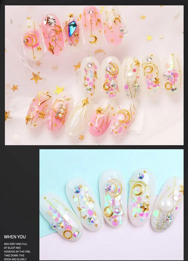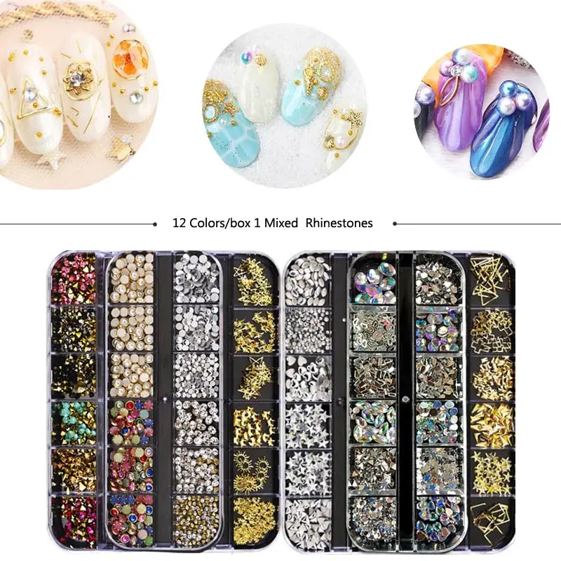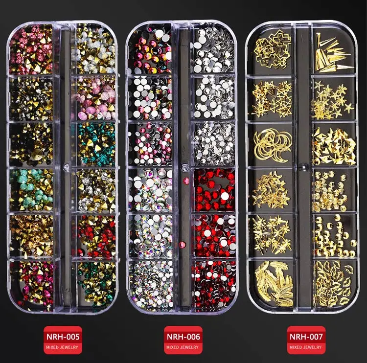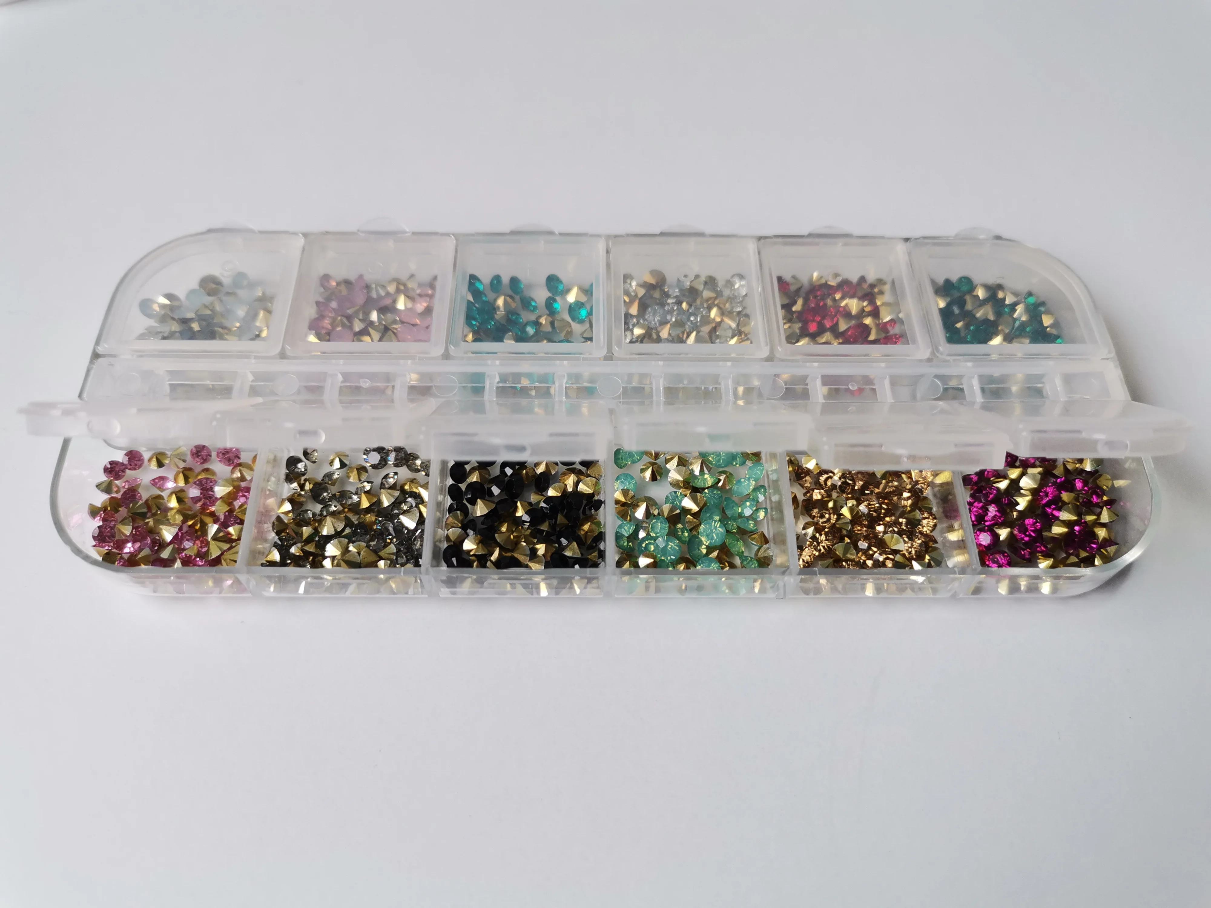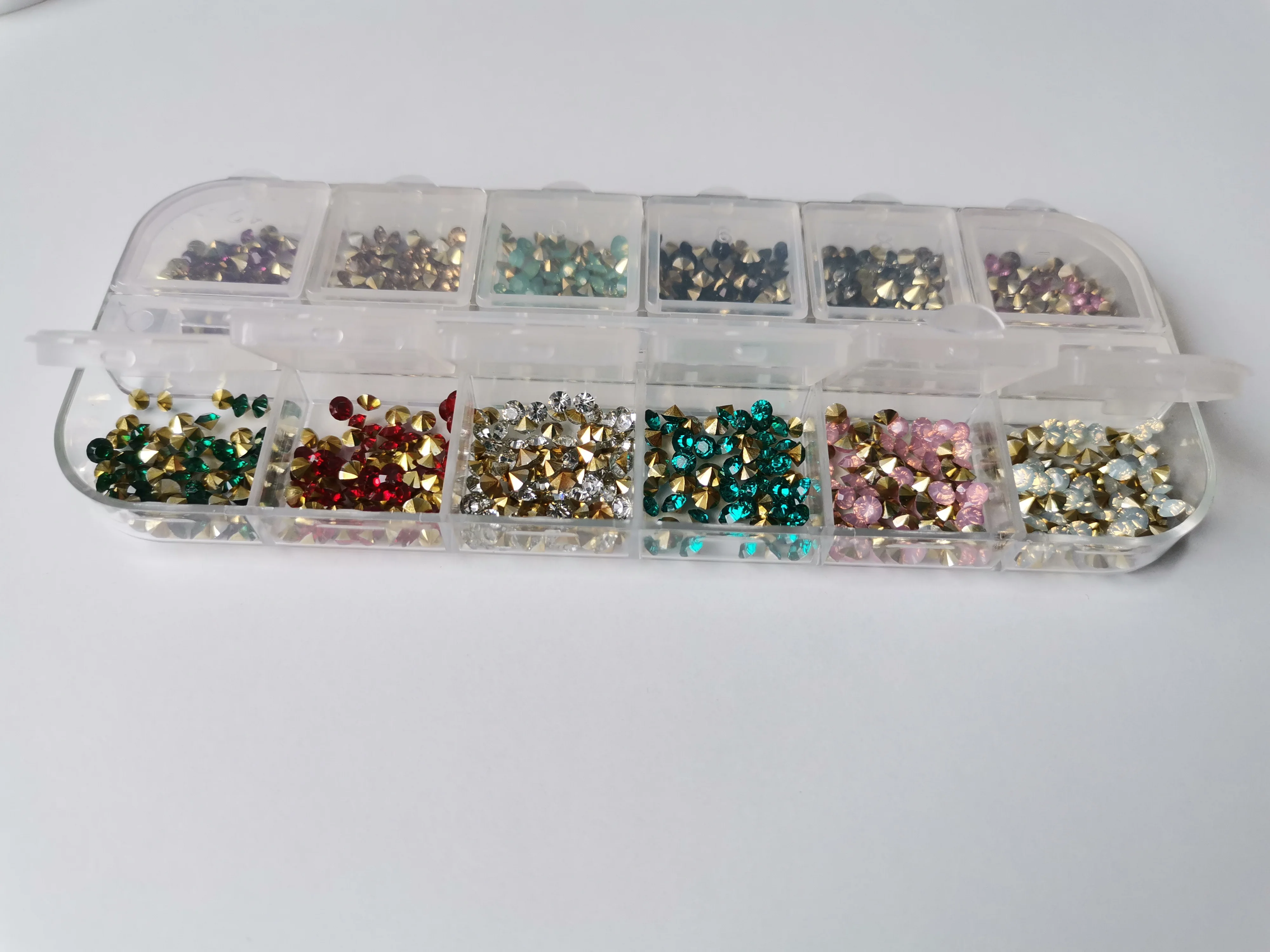 Украшения для ногтей, Стразы для ногтей, разные цвета, кристаллы AB, стразы, 3D очаровательные самоцветы, заклепки для ногтей, аксессуары для маникюра, 1 коробка