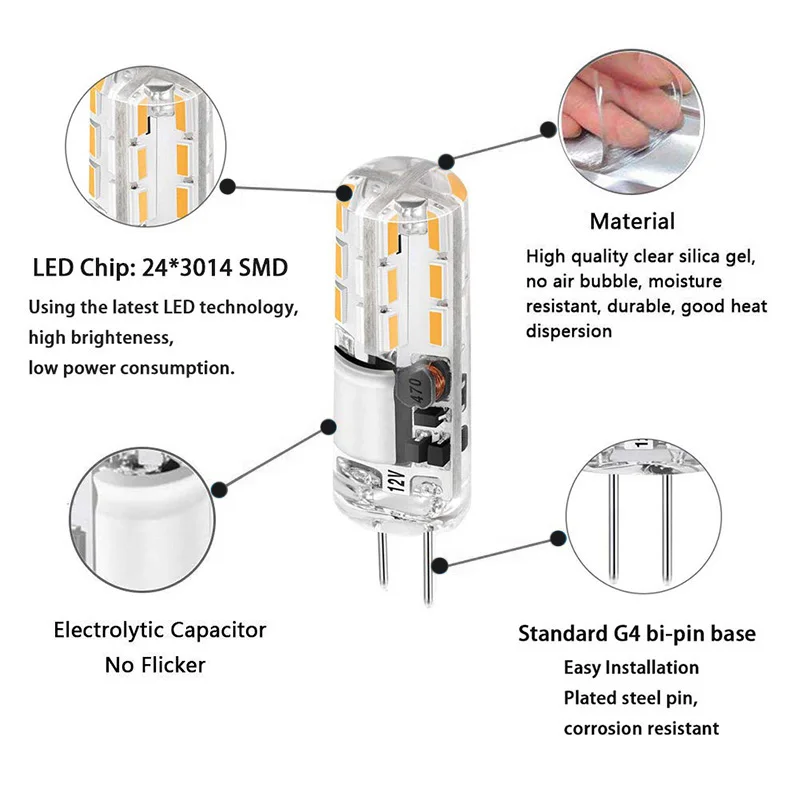 Двухконтактная Светодиодная лампа G4, ее можно легко установить по сравнению с обычными галогенными лампами.