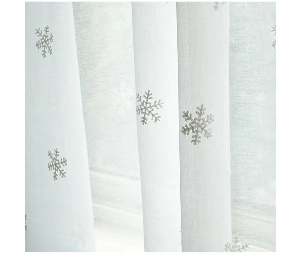 Тюлевая занавеска белого цвета с вышивкой в виде снежинок для гости...