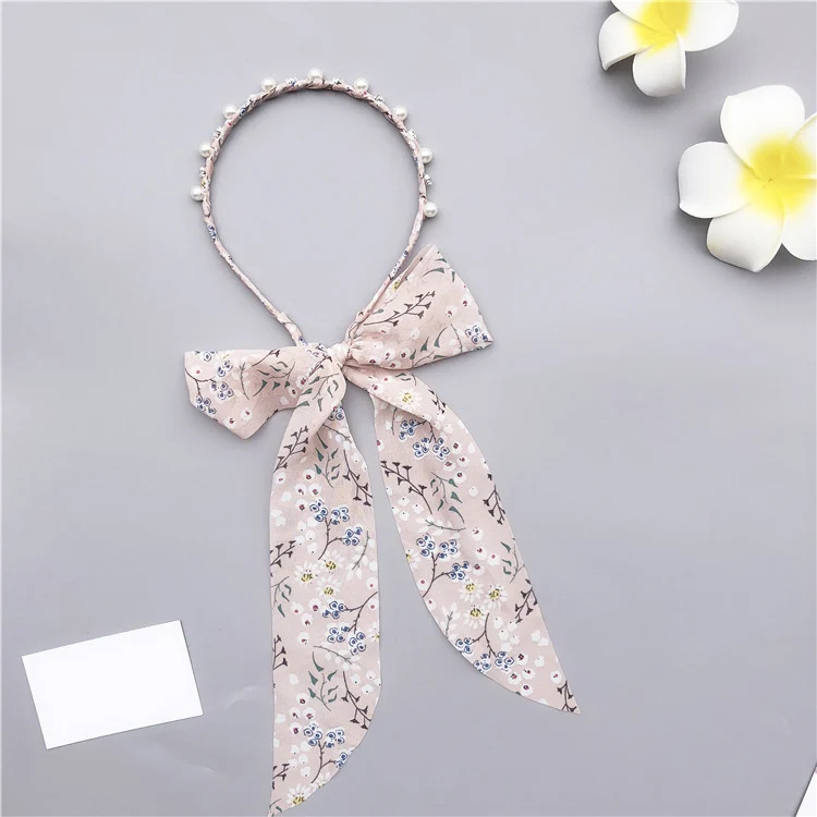 Ободок для волос с жемчугом, в Корейском стиле, с бантом, аксессуар для волос