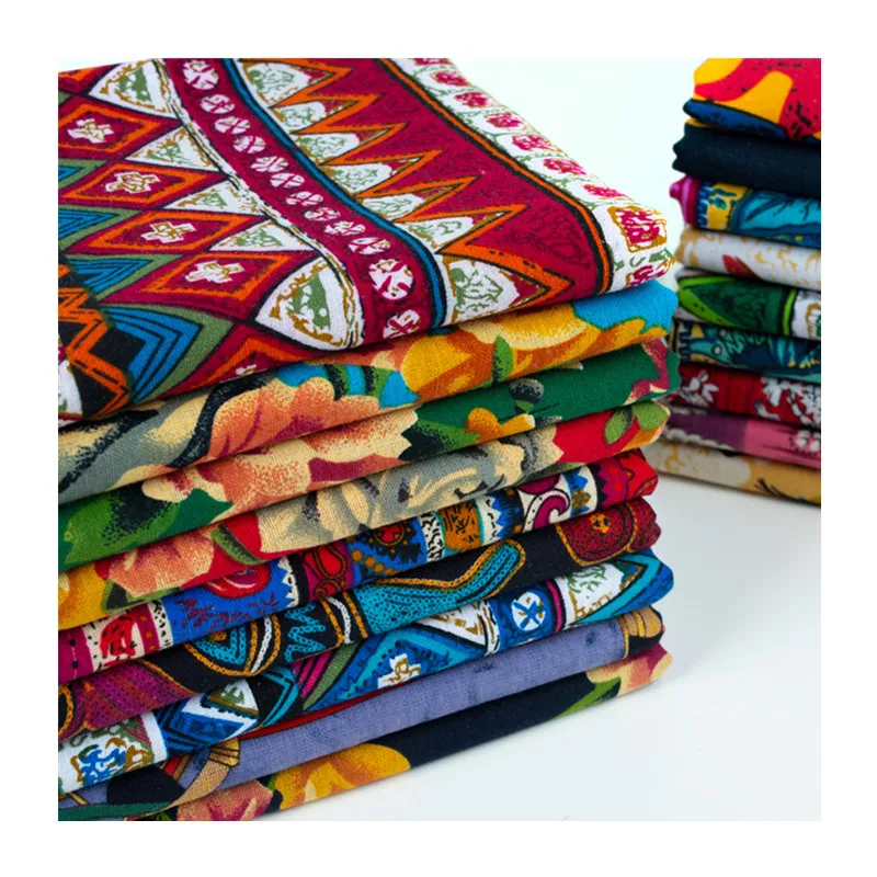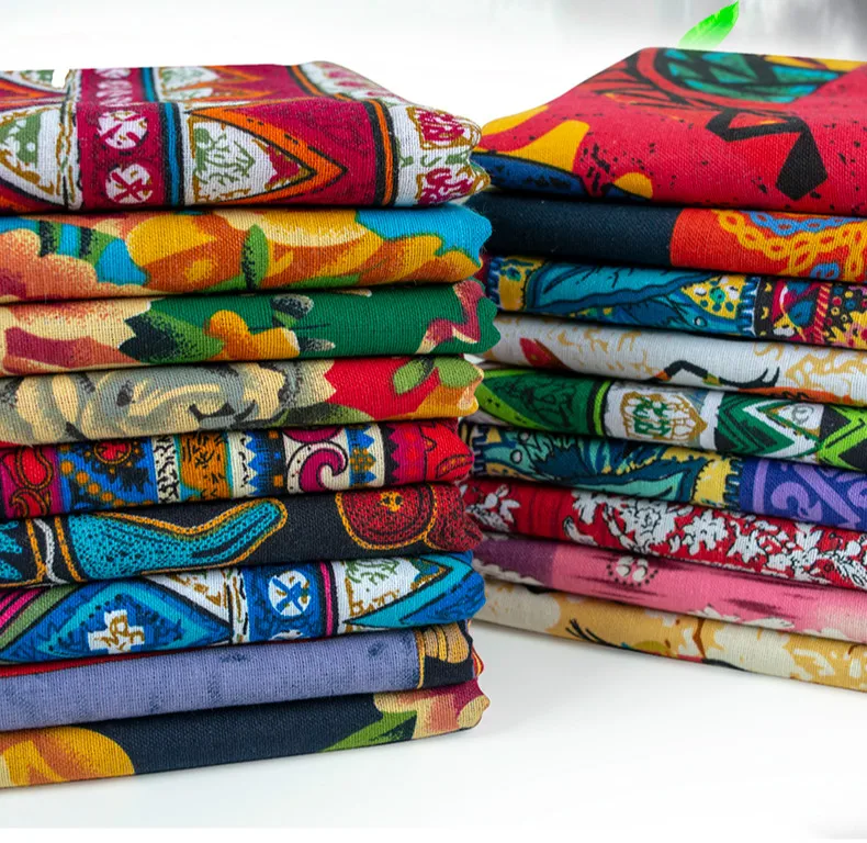 Ткань из хлопка и льна в этническом стиле, текстиль ручной работы с...