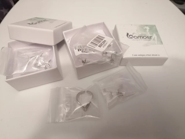 Красивые серёжки. Каждая была в индивидуальном пакетике + коробочка. Размер маленький, фото на ушке прилагаю. Смотрятся очень мило! Есть проба. Классный бренд, покупаю не первый раз. Трек отслеживался. Доставка в срок. Заказом довольна! Спасибо)))