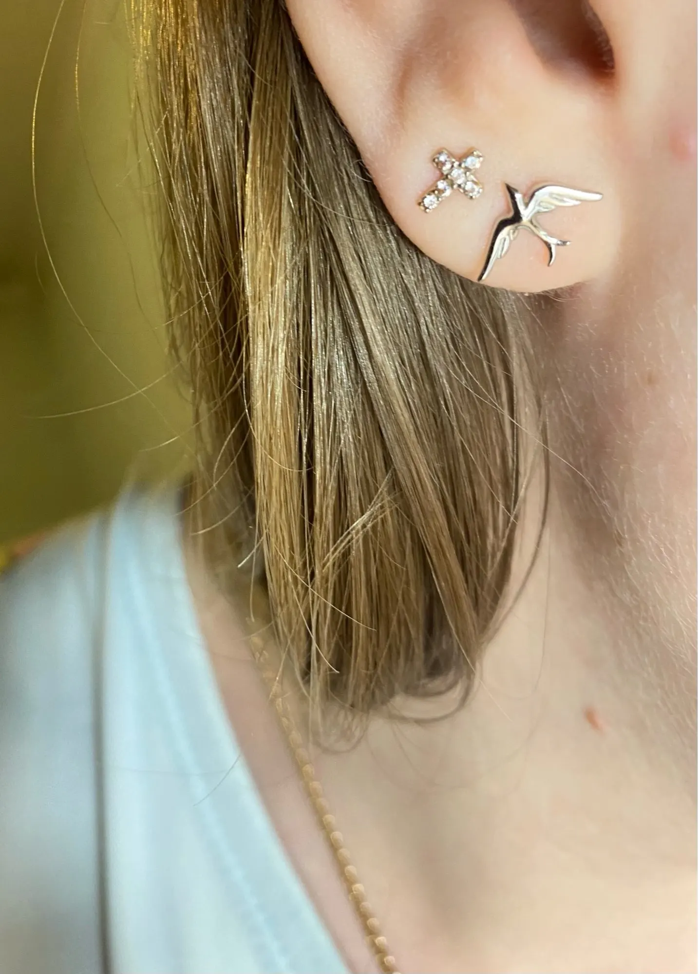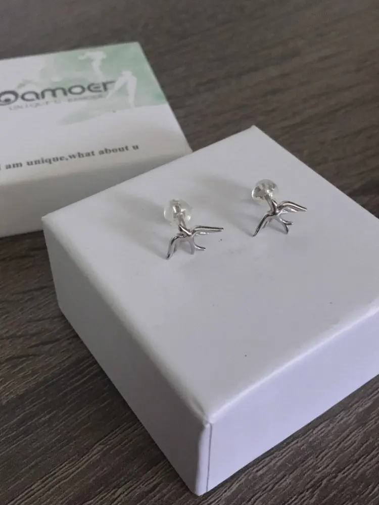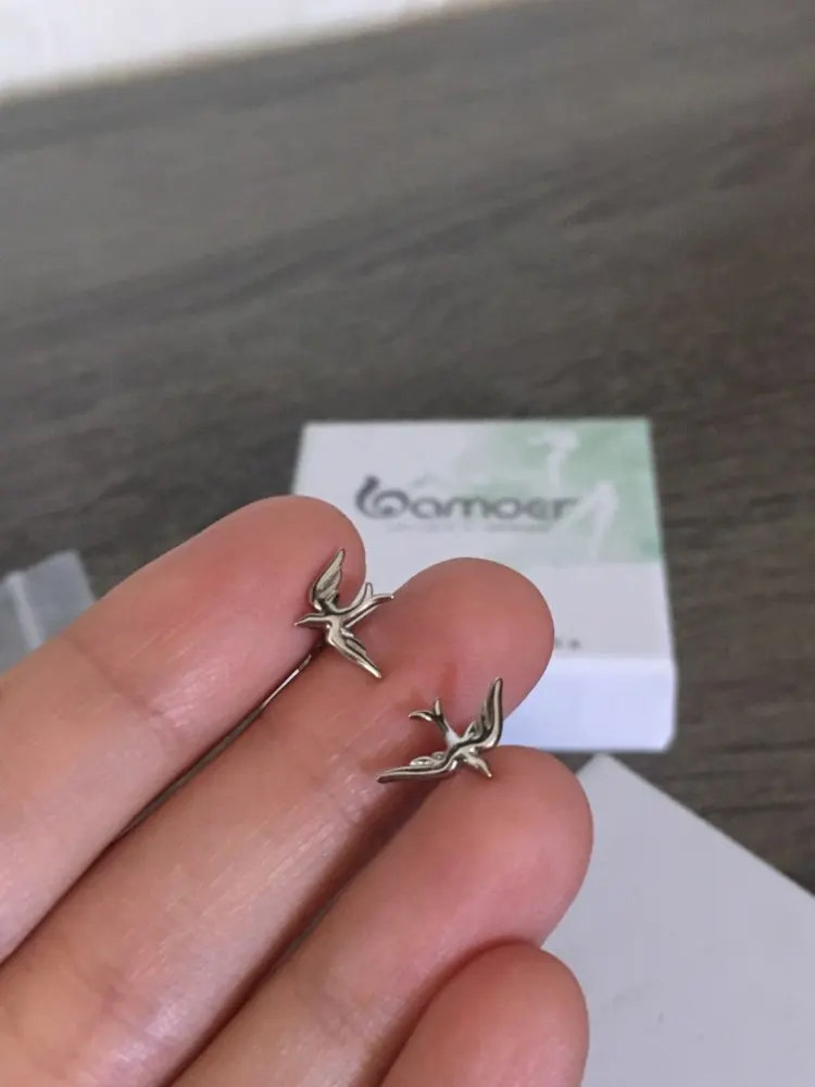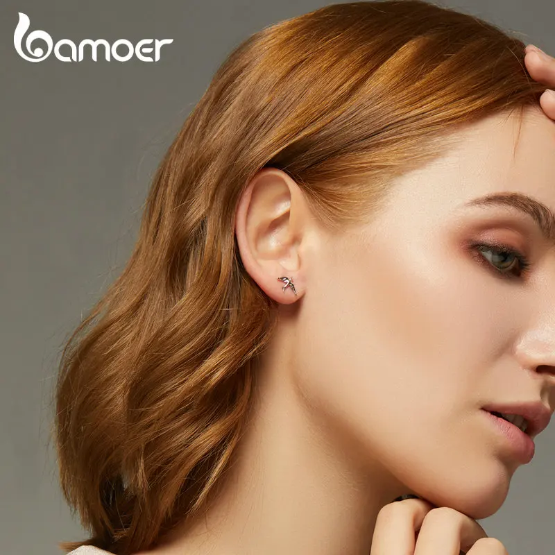 Женские серьги-гвоздики из серебра 925 пробы, в виде ласточек, BSE302