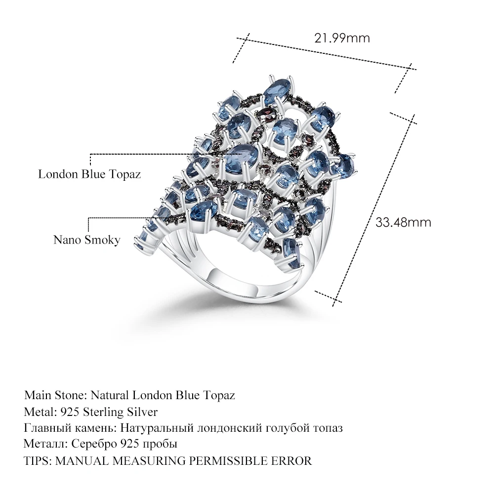 Кольцо женское из серебра 925 пробы, с натуральным лондонским голуб...