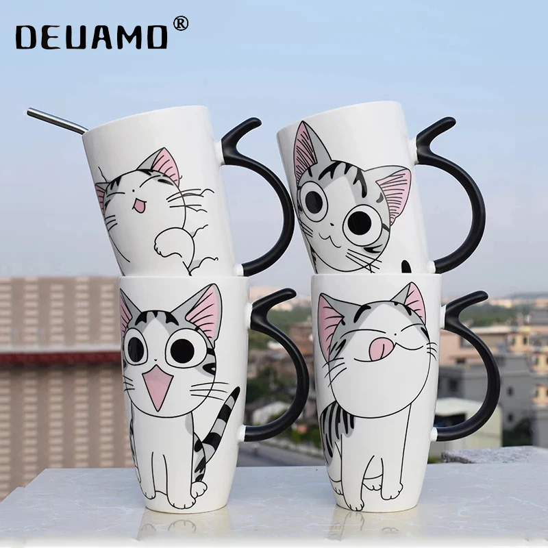 Кофейная кружка, чайная чашка, керамическая крышка с мультяшным кот...