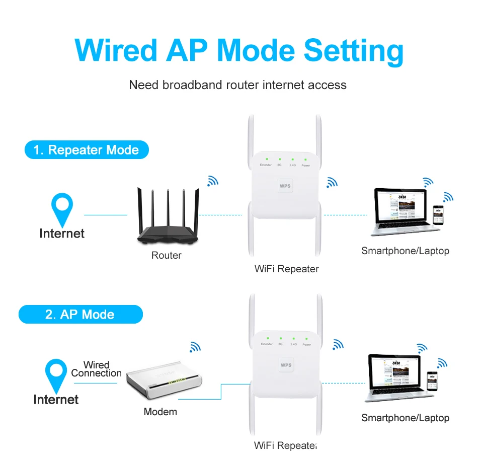 Wi-Fi-ретранслятор 2,4G, 5G Гц, 300 Мбитс, 802.11AC 1200