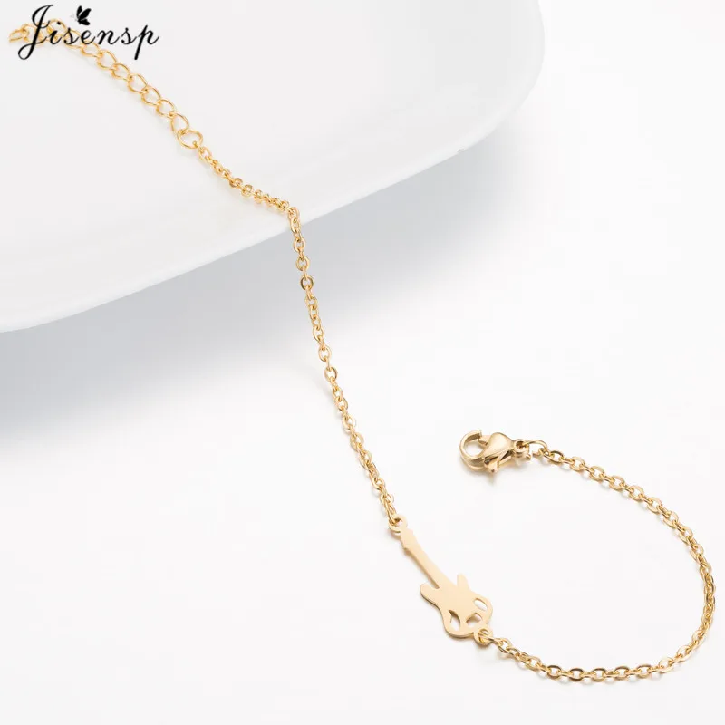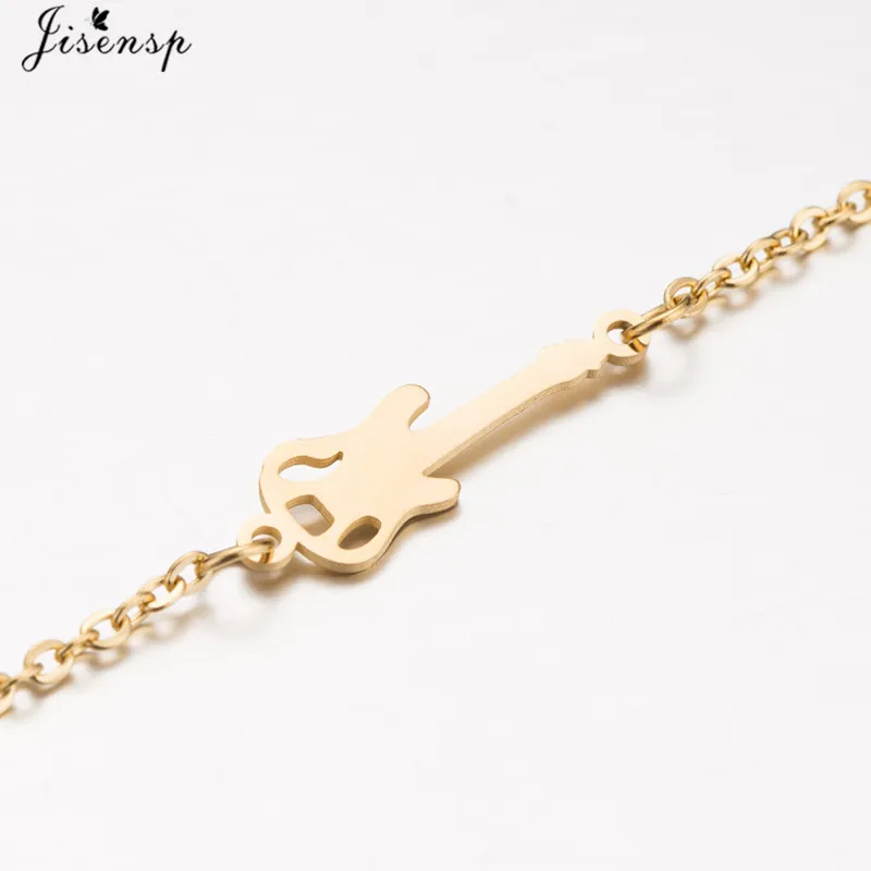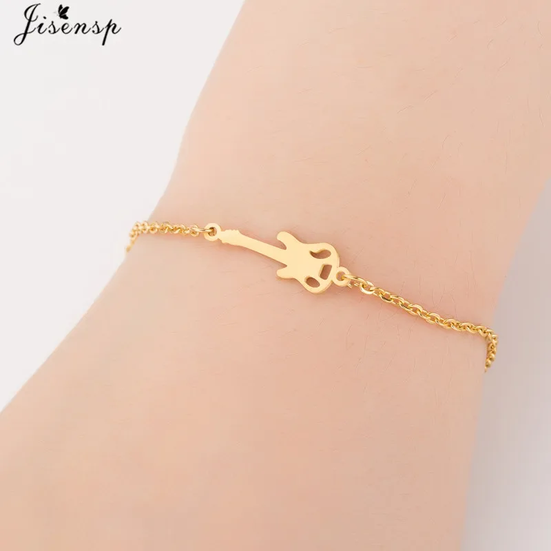 Jisensp уникальный дизайн гитара браслет из нержавеющей стали браслет с подвеской и геометрическим дизайном для женщин, подарок на день рождения, бижутерия