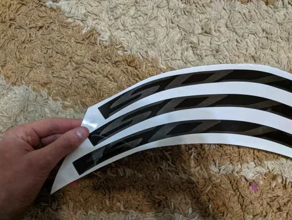 Плохое качество наклеек. Хотя он идеально подходит к размеру колеса и клею хорошо, наклейка очень легко шипается, просто надевая его, при нажатии пальцами на обод остается несколько маленьких белых канавок. Я еще не был в сети, чтобы узнать, может ли он удерживать, но я ему не доверяю.