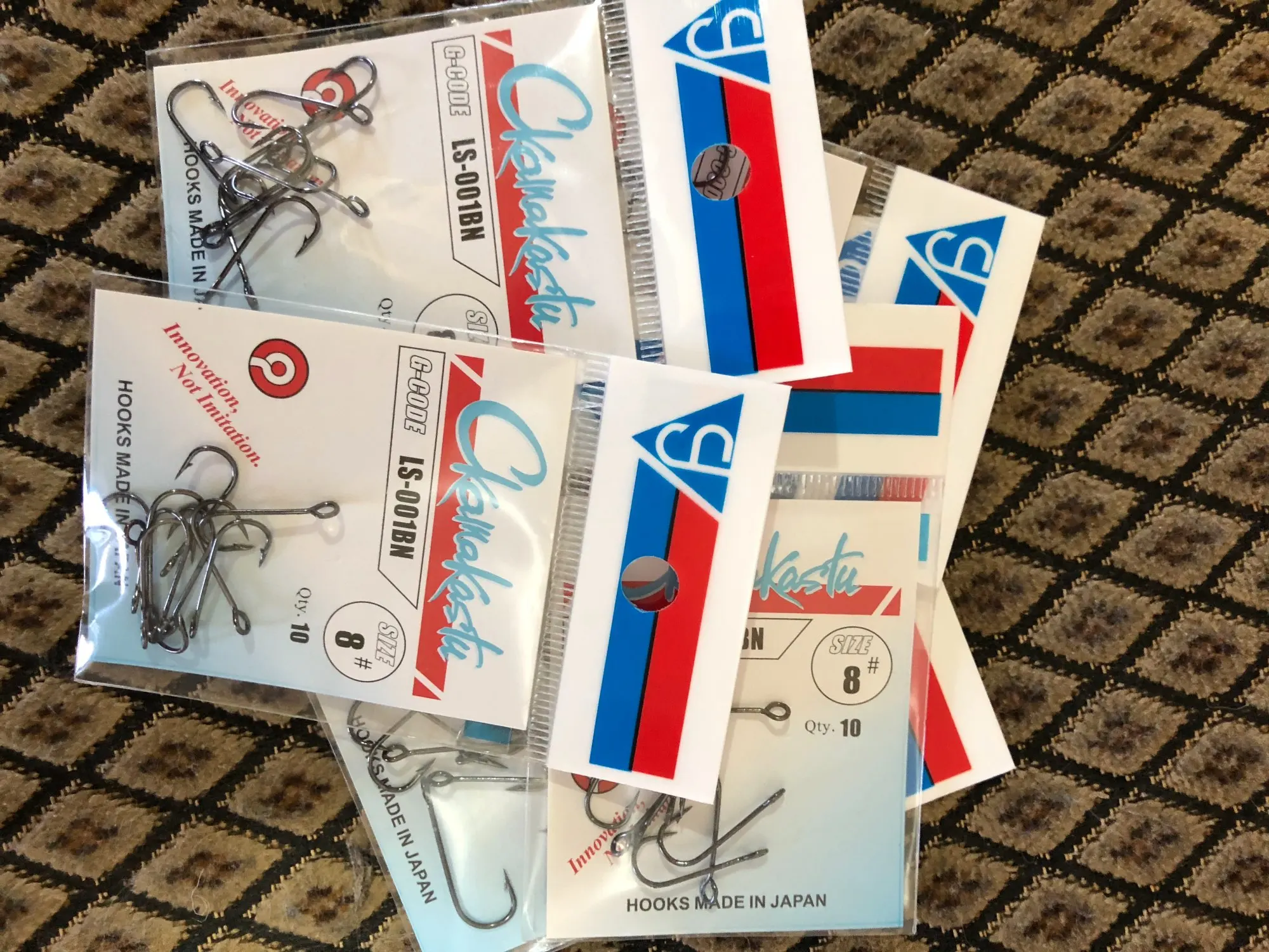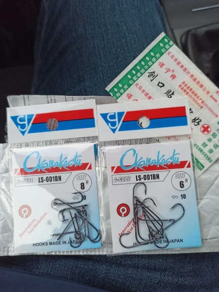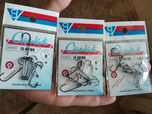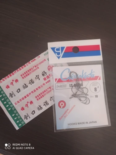 Представляю вашему вниманию "японские" крючки Гамакатсу. Это если не вчитываться, ну подумаешь буковки не в том порядке да и не те, мелочь какая. Инновационные крючки, сделанные в "Японии", ну или где-то рядом, недалеко. Но крючки хороши, без всяких шуток. Для микроджига самое то, у него ушко, я бы сказал даже Ухо, в диаметре миллиметра 3, да его можно на гвоздь надеть при желании. Острые, ровные, придраться не к чему. Вот только очень хрупкие, да, производитель так и пишет, НЕ РАЗБЕЙ, прямо черным по белому, на безупречном русском. Сию минуту ватой каждый крючок замотаю, от греха, а то до рыбалки ещё 4 месяца, все поколю. Да, продавец в подарок положил две полоски пластыря. На что он намекает? Я не понял, но однозначно он что-то знает. И так вердикт, категорически рекомендую покупать, одно ухо чего стоит, на любой чебурашке крючок будет болтаться как поплавок в проруби. "Скамакасту" ерунды не сделает, берите не раздумывая, пока в наличии. У меня всё.