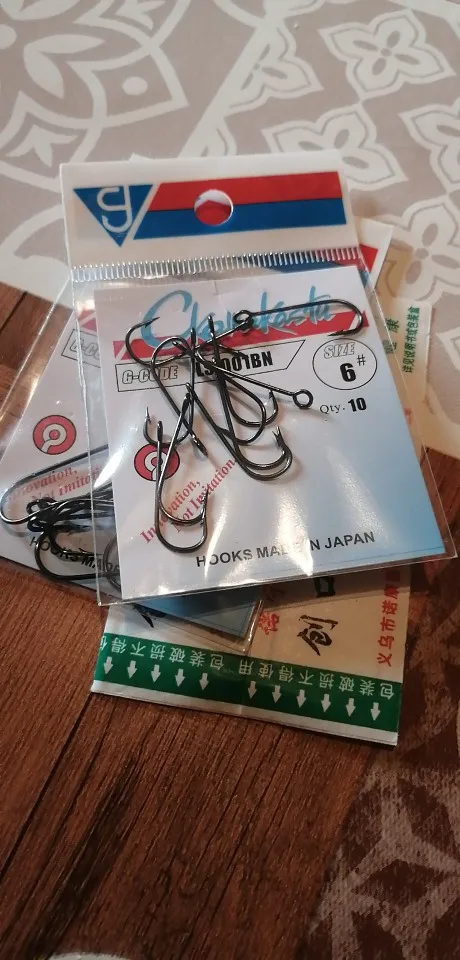 Крючки для джига не плохие. Острота новых на "хорошо", будут ли тупиться, увидим. Проволока на мелких толстовата, кроме того ушки на всех номерах крючков одинакового размера, что для малых размеров, в частности N10 не есть хорошо. Доставка быстрая, продавцу спасибо!