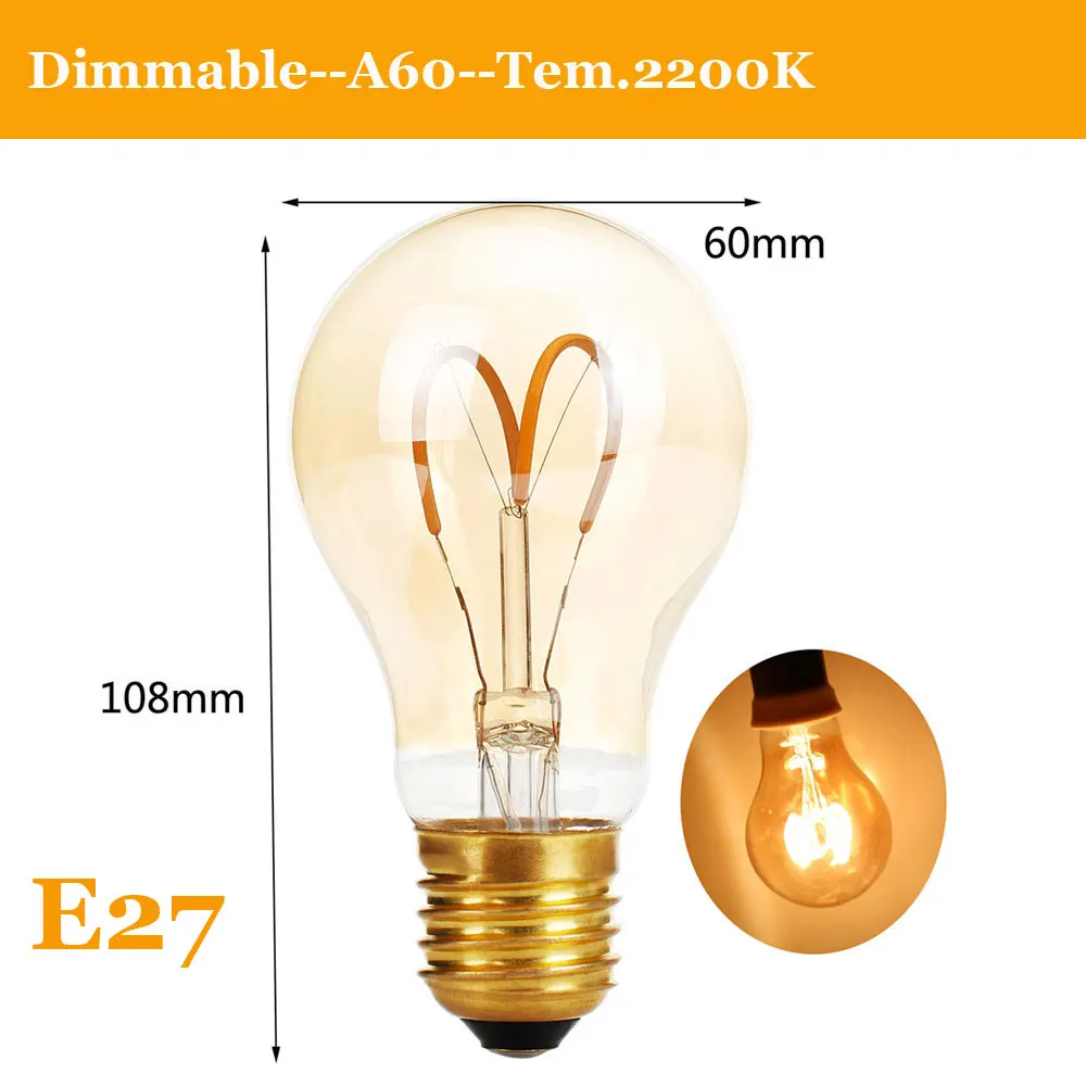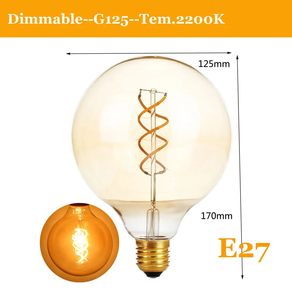 Винтажная лампа E27 в стиле ретро с регулируемой яркостью, 220 В, A60, T30, G80, ST64, G95, G125, вольфрамовое украшение для внутреннего освещения