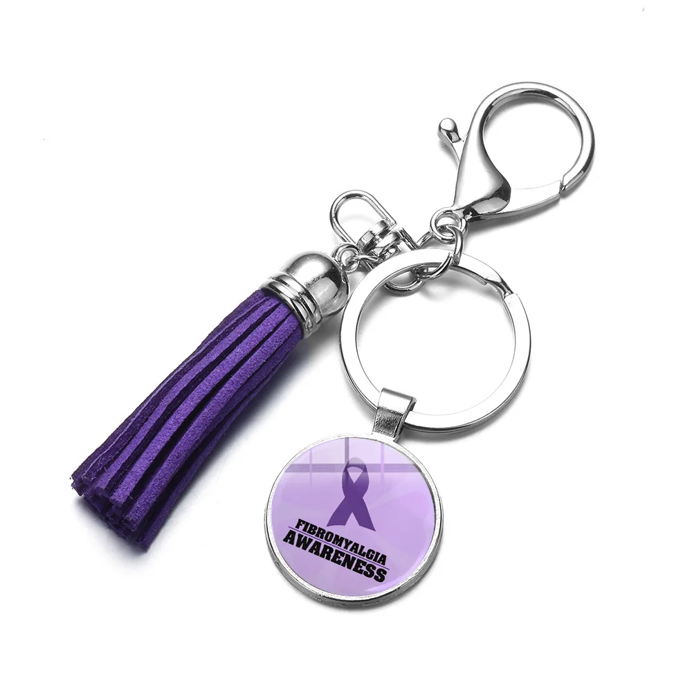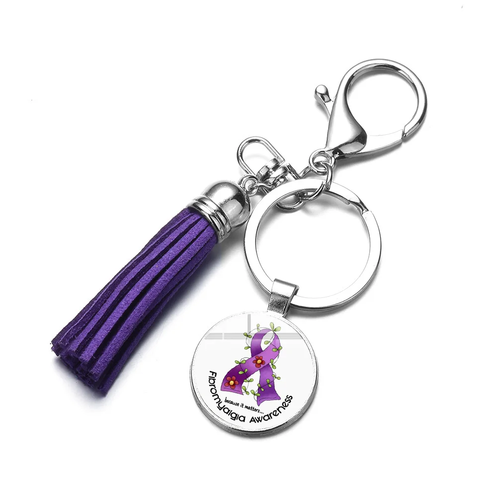 Фибромиалгия брелок I Am часть лечения Цитата бабочка изображение Шарм фиолетовый брелок для ключей с кисточкой надеется, ювелирные изделия