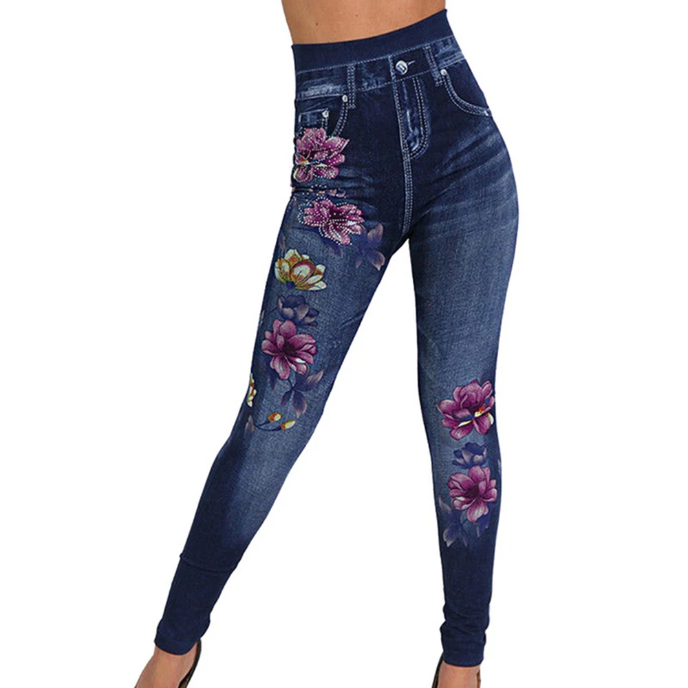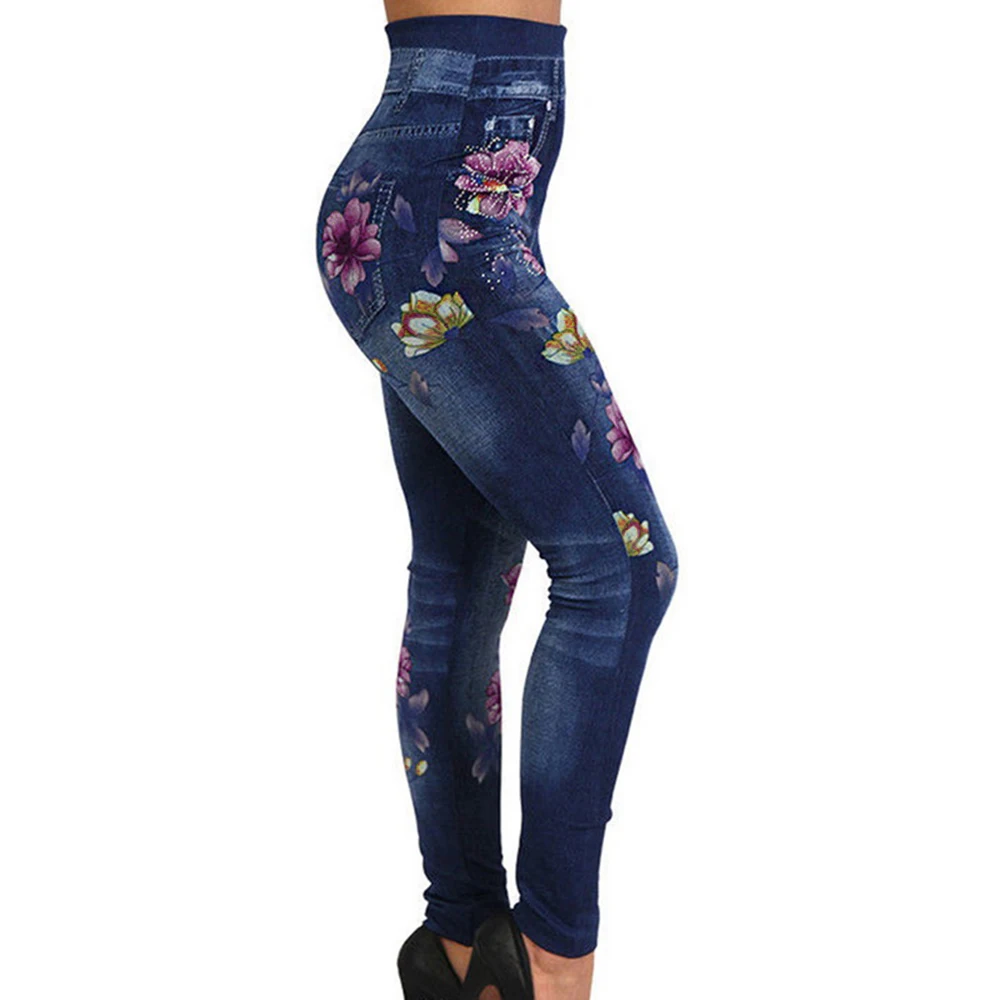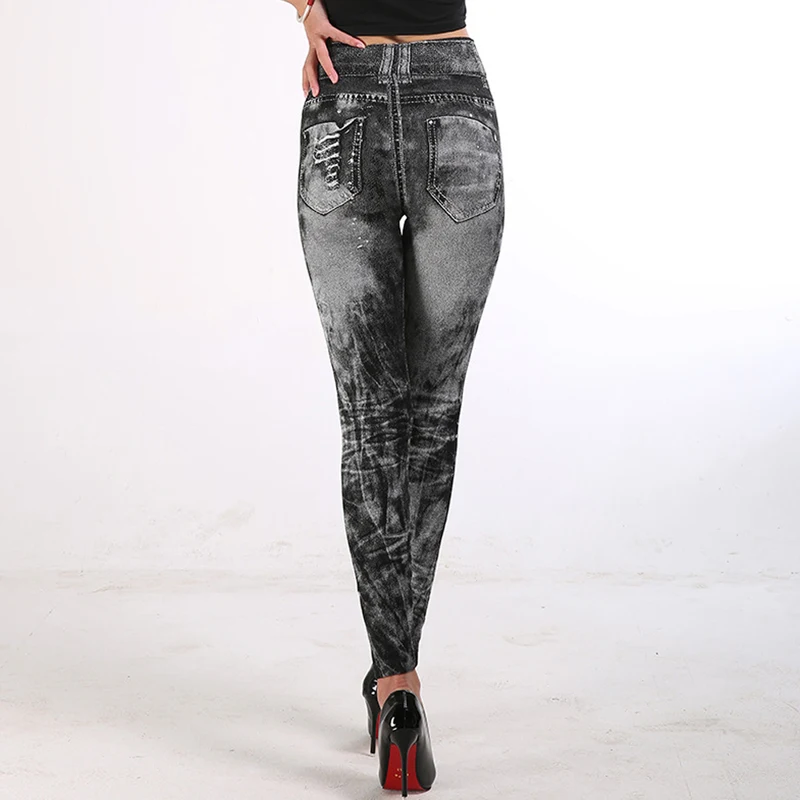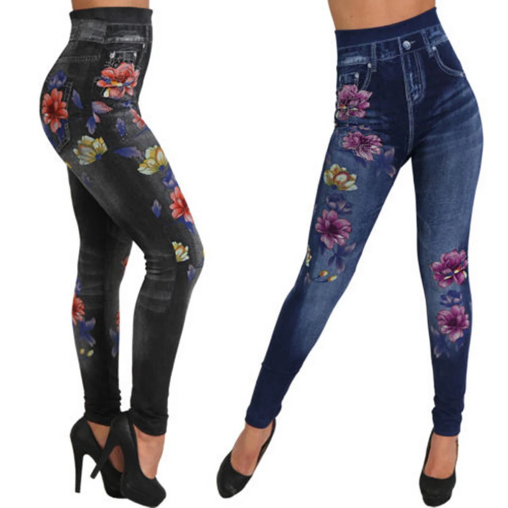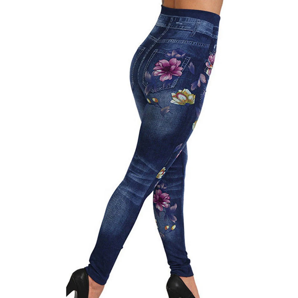 Женские леггинсы с принтом узкие брюки осень и зима повседневные новые эластичные модные с высокой талией имитация джинсов леггинсы размера плюс 3XL