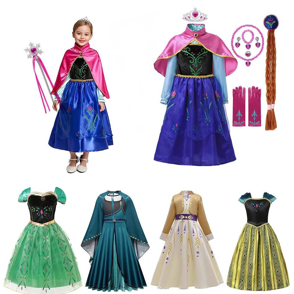 Детский костюм Анны, с плащом, для карнавала, Хэллоуина, дня рождения