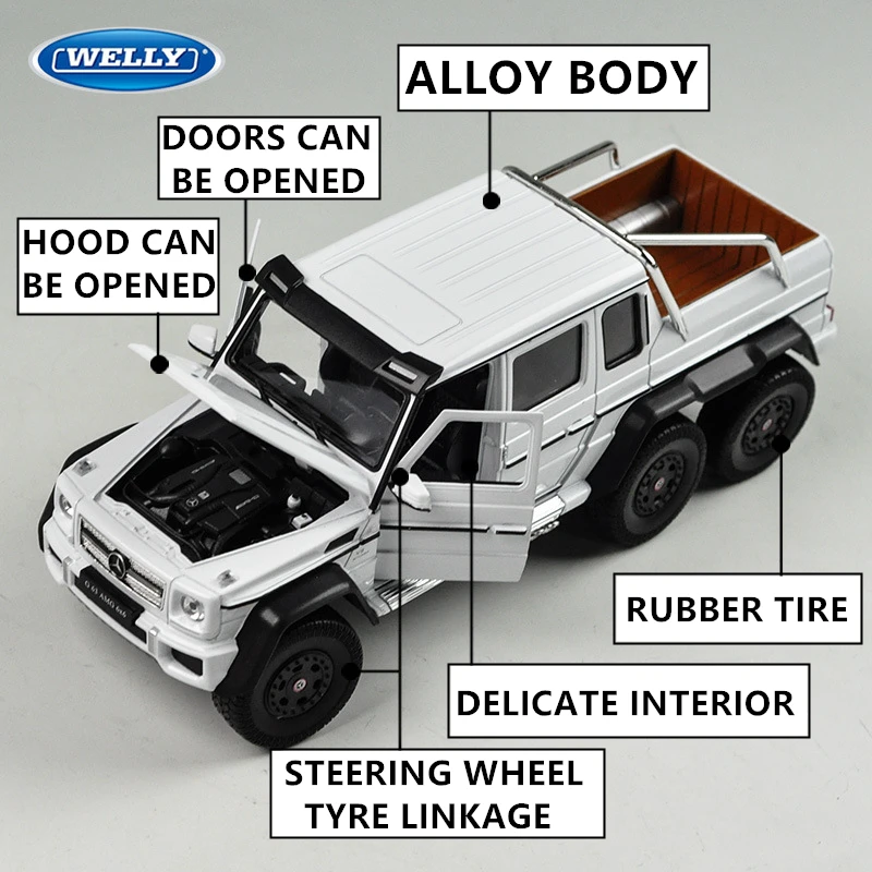 Модель автомобиля WELLY 1:24 Mercedes-Benz G-Class G63 6X6, модель автомобиля из сплава, модель автомобиля, украшение, коллекция, подарок, игрушка, литье под давлением
