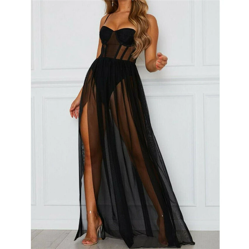 Летнее женское сексуальное бикини, длинное прозрачное Сетчатое плат...