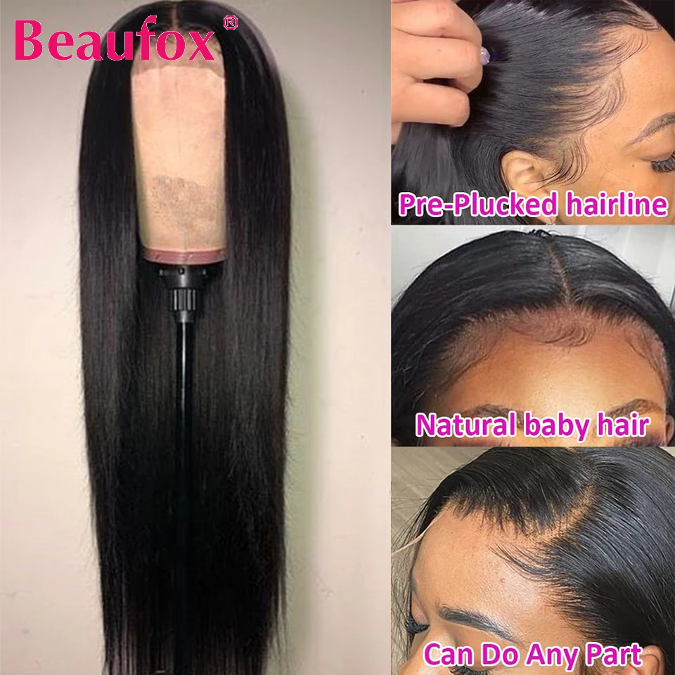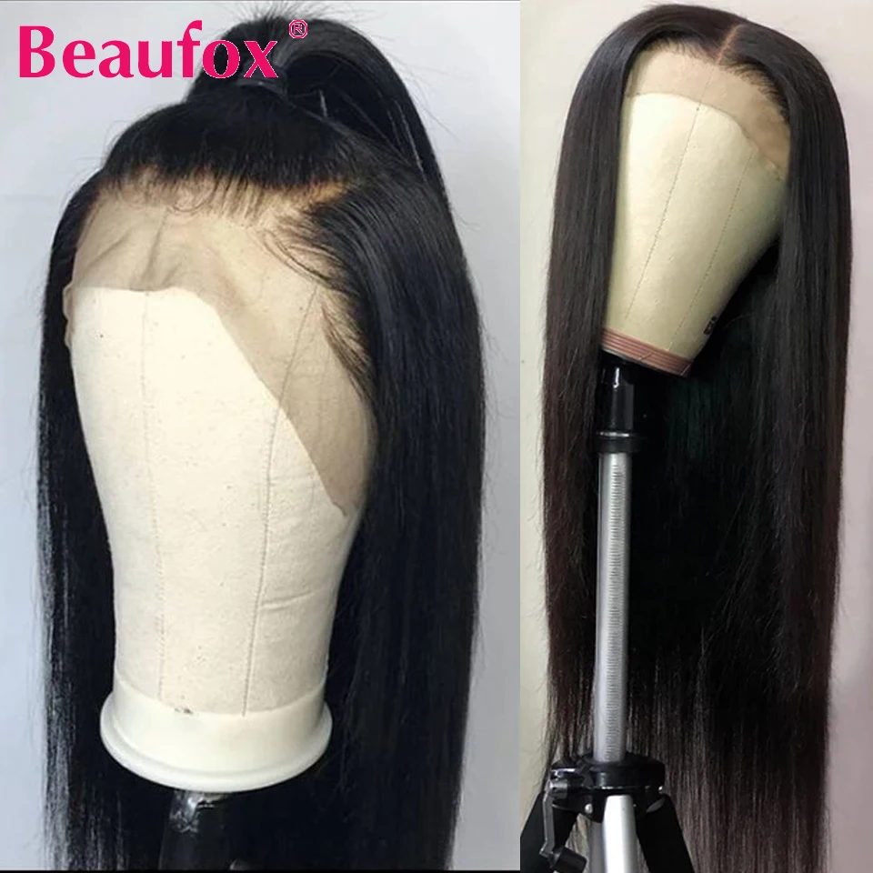 Прямые парики Beaufox на сетке спереди для чернокожих женщин, бразильский парик на сетке спереди из человеческих волос, Детские волосы 13x4, парик на сетке 180% без повреждений
