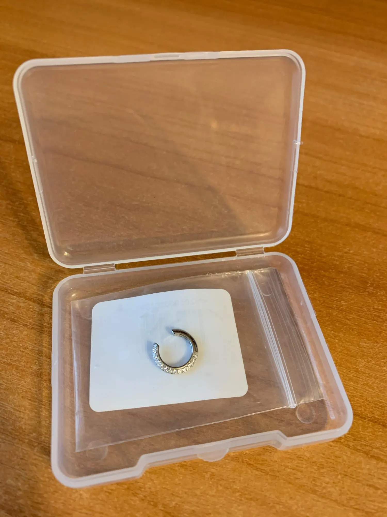 Прибыла в маленькую пластиковую коробку, которая гарантирует идеальную защиту товаров. Идеальный размер, который также регулируется. Идеальный золотой цвет. Более чем безопасный