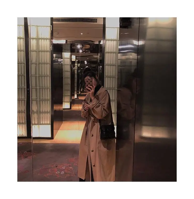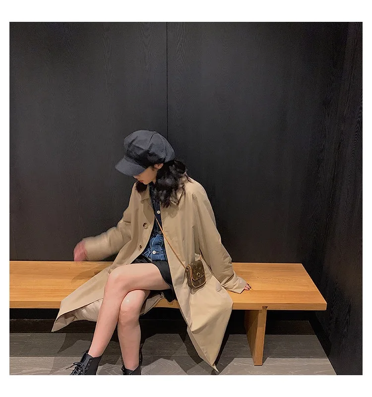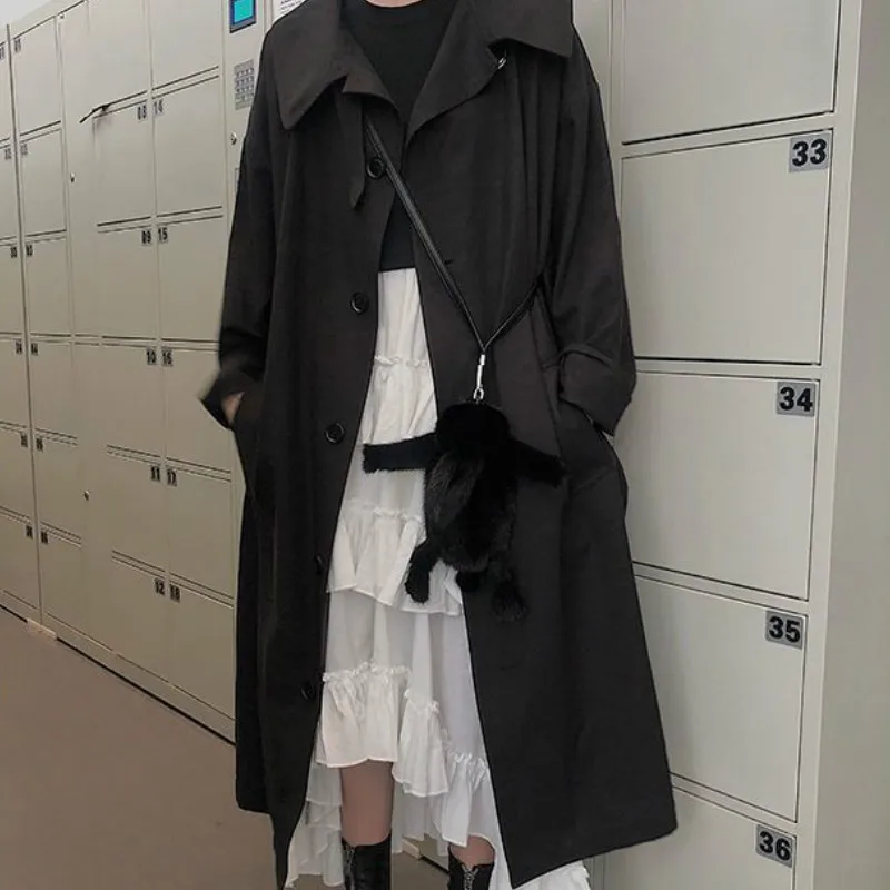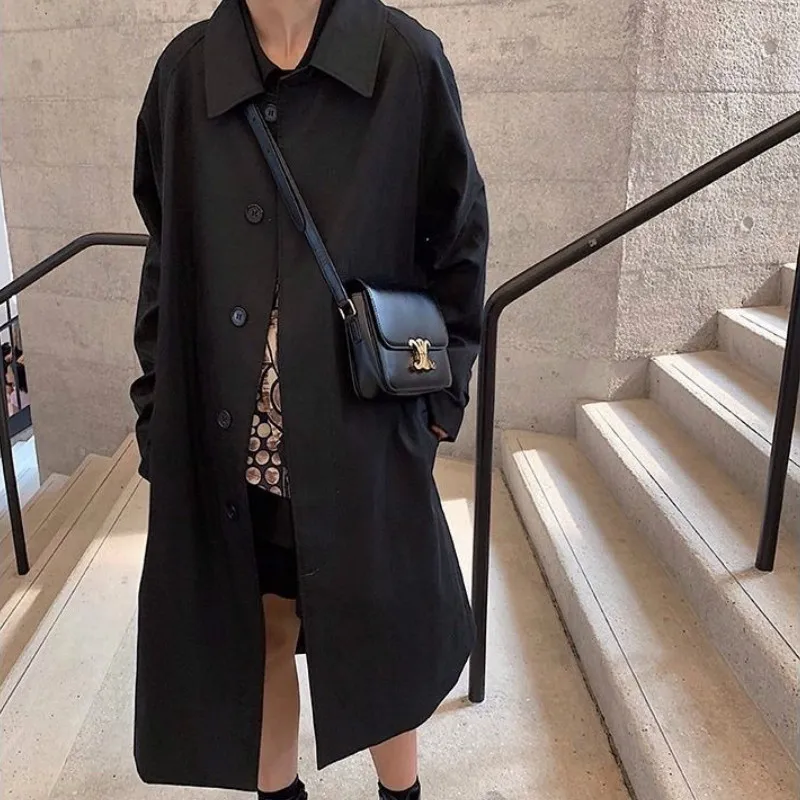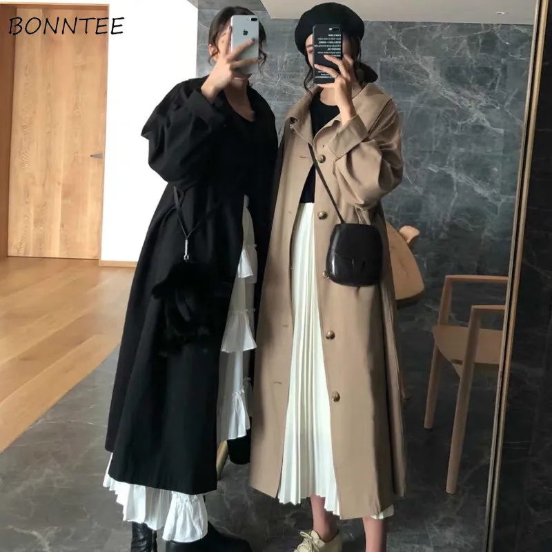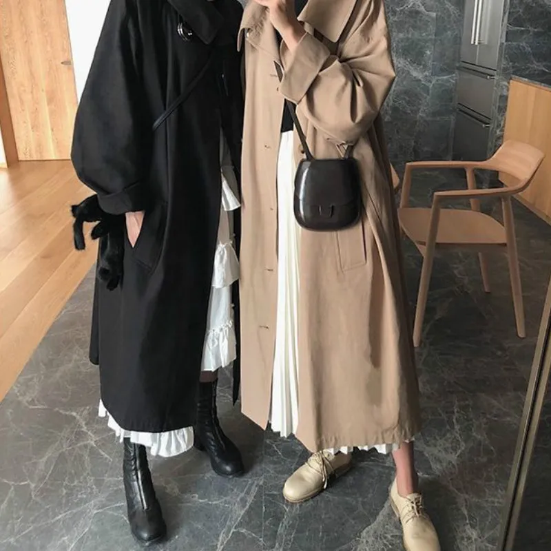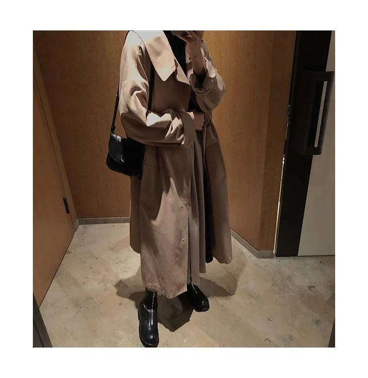 Тренч Женский однобортный, с карманами, однотонный, длинный, большие размеры 3XL, мягкая, для отдыха, для студентов
