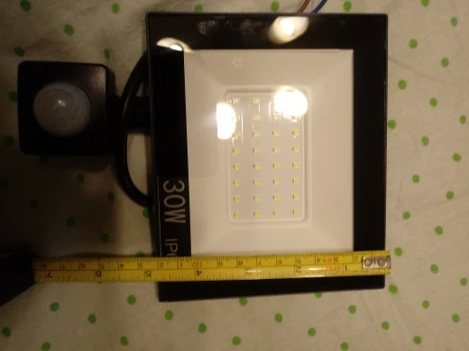 пришёл товар в течении месяца в Украину. Вмятина на датчике движения, не знаю как это отразиться на его работе. Сам прожектор проверил - работает нормально
