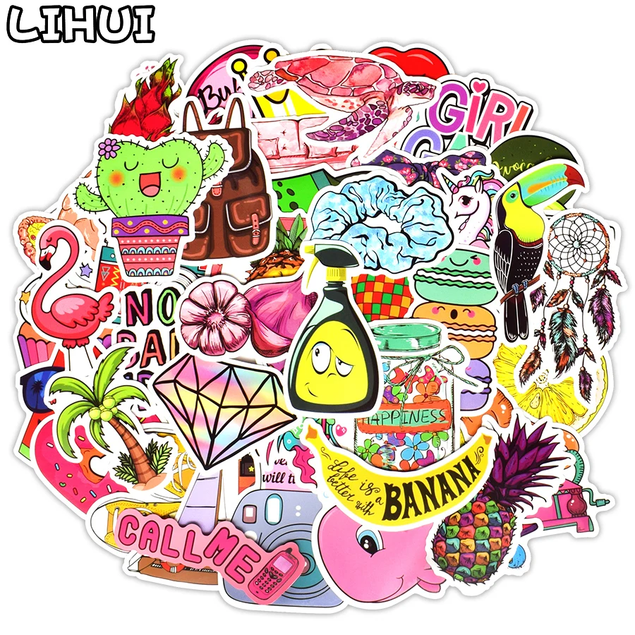 50 шт., Мультяшные наклейки Vsco для девочек, Kawaii, игрушки для детей, милые наклейки на ноутбук, велосипед, мото автомобиль, багаж, скейтборд, наклейки