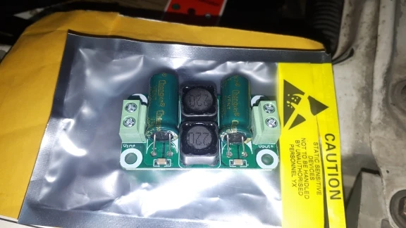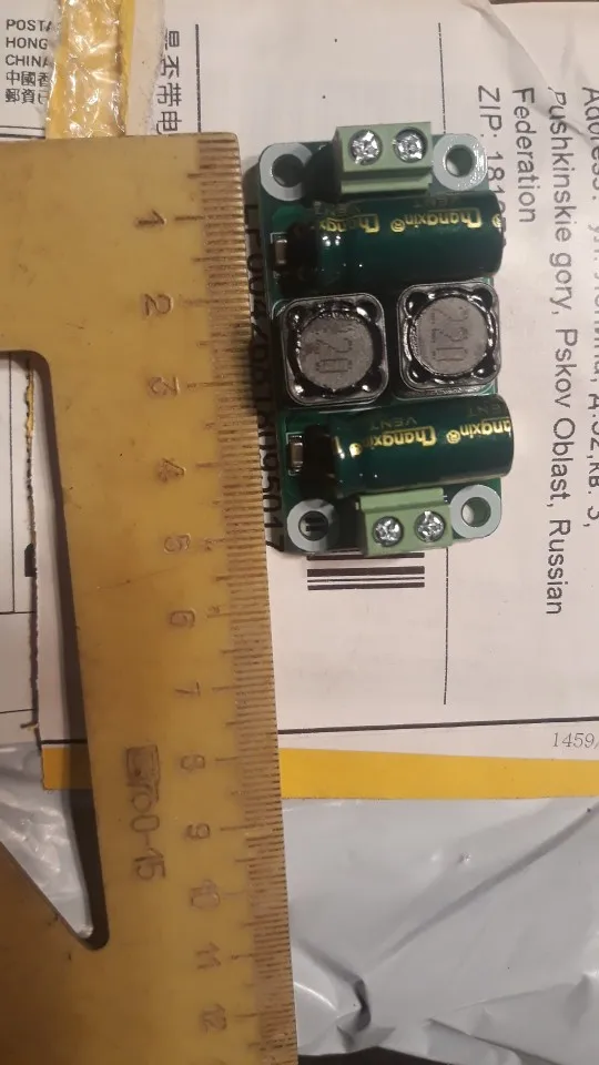 до ДВ шло ~25 дней. Упакованно в пупырку и антистатический пакетик. Технически оно работает, не греется. Буду врезать в питание перед (Ali*) авто магнитолой т.к. идут наводки от генератора. После отключения некоторое время продолжает отдавать электричество разряжая кондёры.