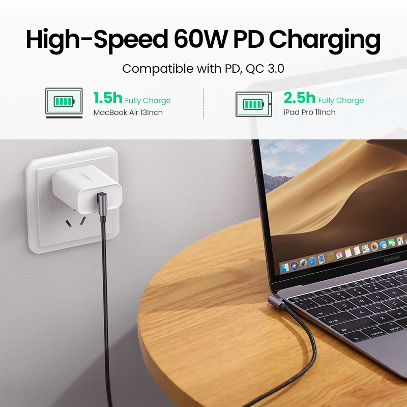 Ugreen Кабель USB типа C - USB C для Samsung S9 S8 Plus PD 60 Вт Быстрая зарядка Быстрая зарядка 4.0 Кабель USB-C для Macbook Pro USB-шнур
