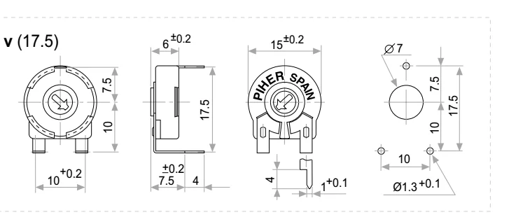 Регулируемый потенциометр PIHER, 100%, горизонтальный, овальный, PT...