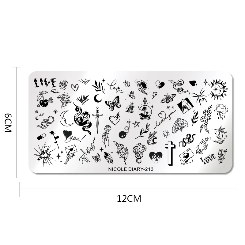 Пластины для стемпинга ногтей с изображением змеи Николь дневник, сердца, бабочки, листьев, цветов, мраморные трафареты для ногтей