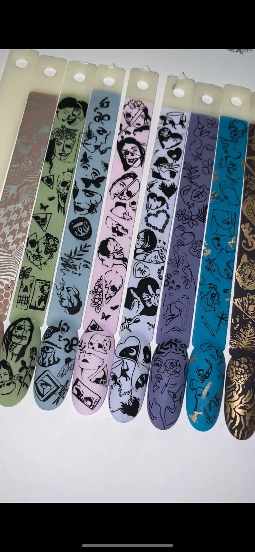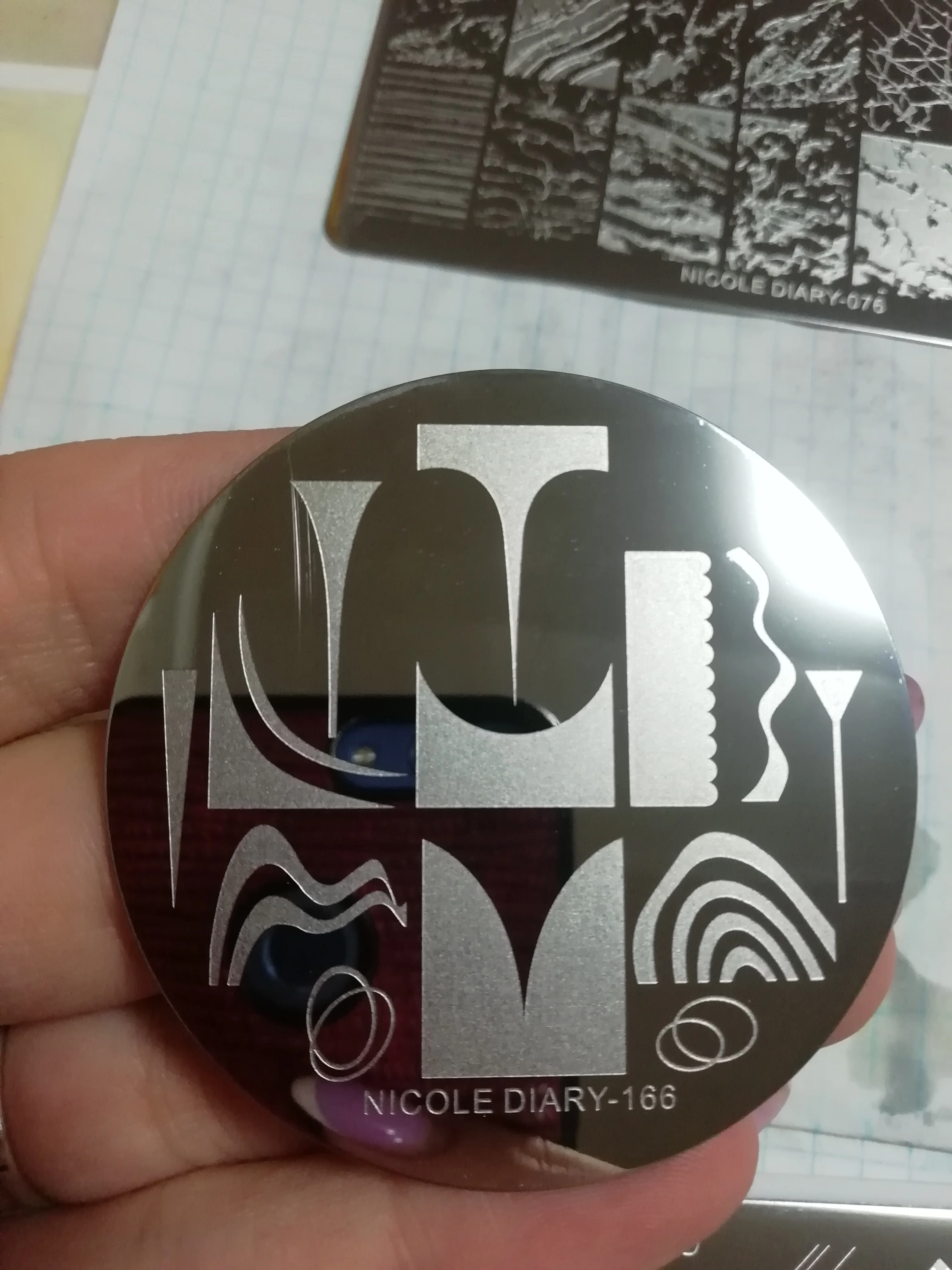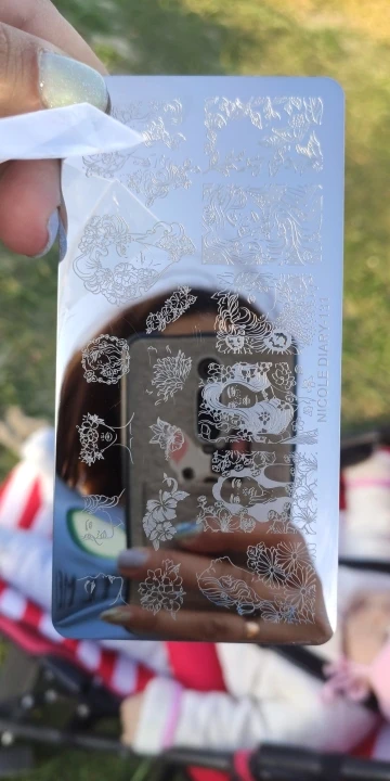 Доставка полтора месяца до Москвы трек номер не отслеживался, описанию на сайте соответствует, покупала за 85 рублей. Рисунки интересные, но гравировка слабоватая, будет работать только с жидким лаком или гель краской. Подойдёт для длинных и широких ногтей.